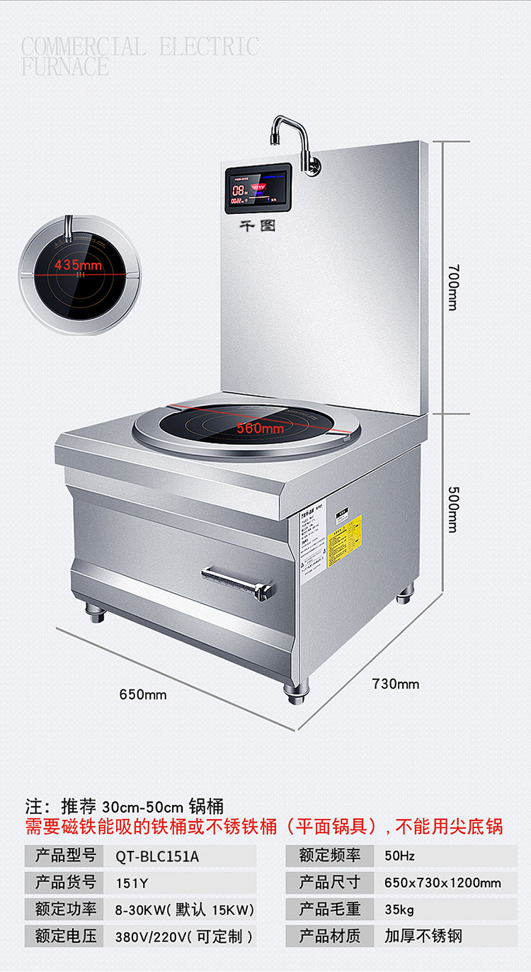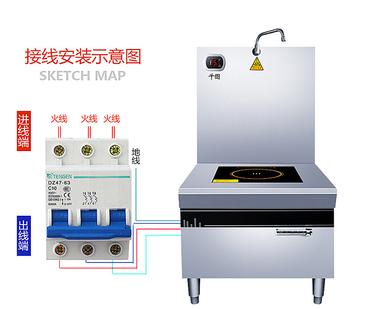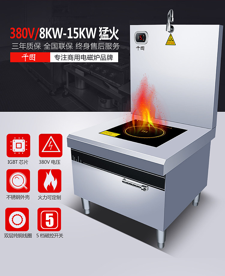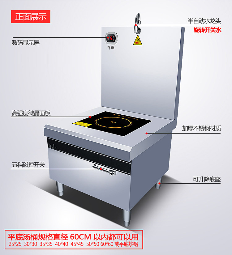 Коммерческая высокая мощная электромагнитная плоскость суп -печь 8/10/15 кВт кафетерий Ресторан Электрический суп печь кипящая вода короткая горшка подвесная суп