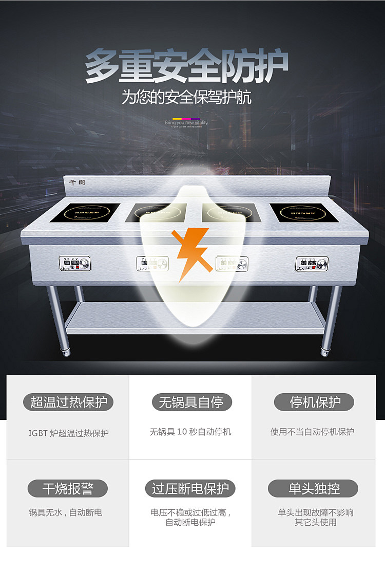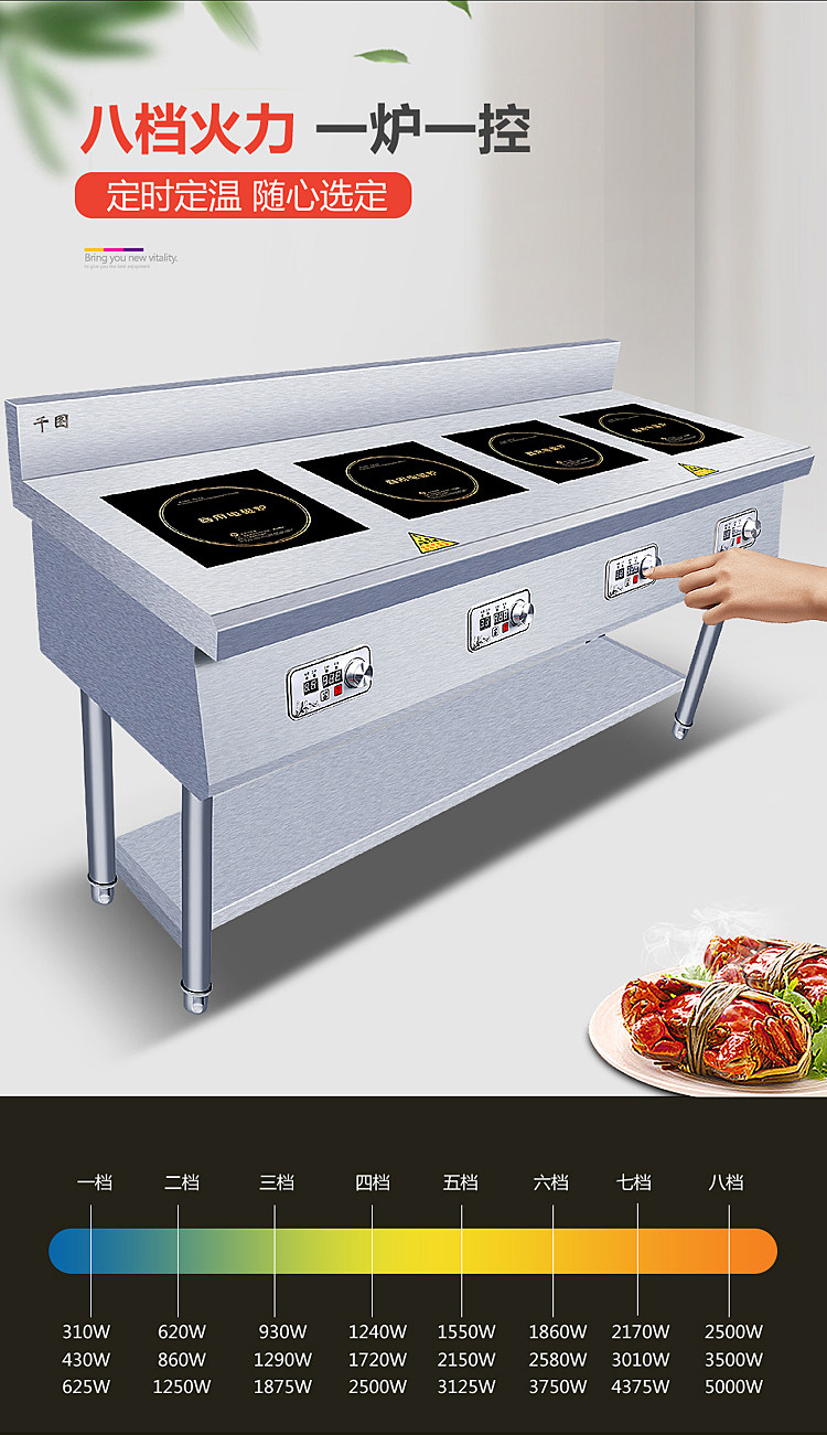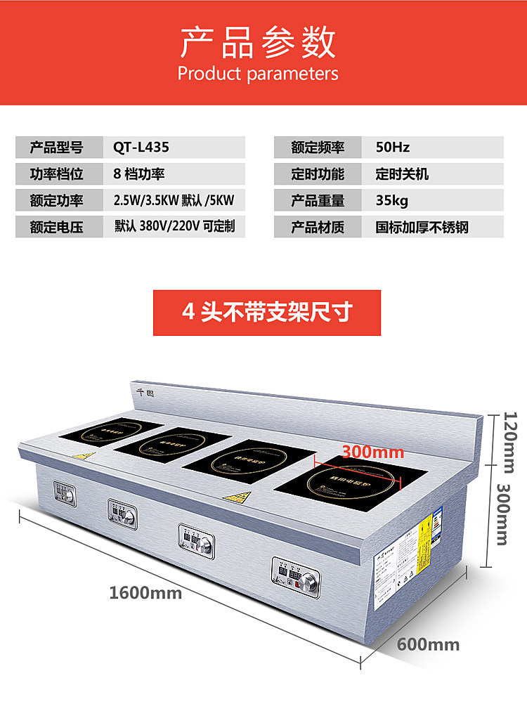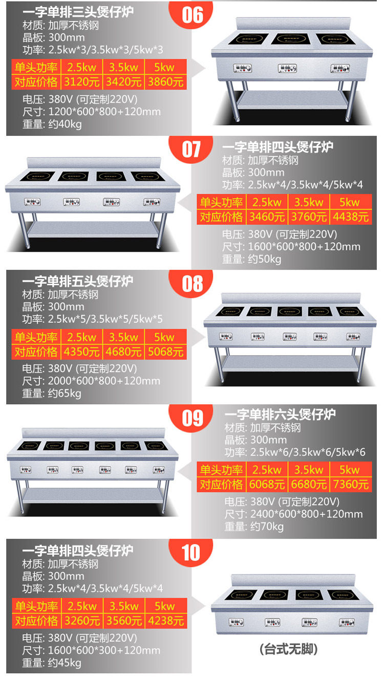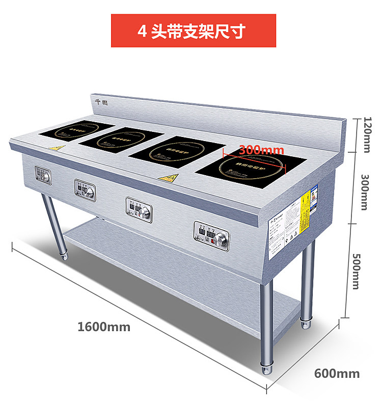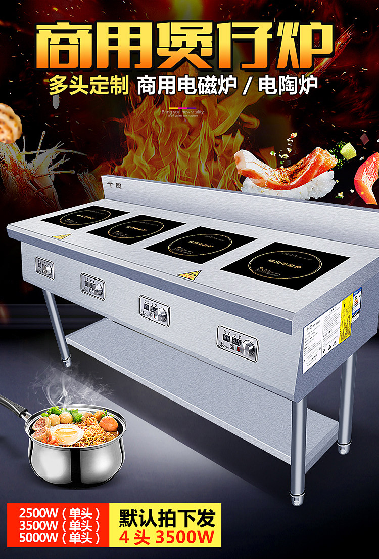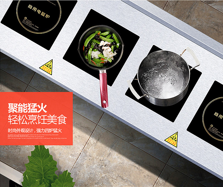 Коммерческая индукционная плита Четыре глаза, одно слово, горизонтальная пряная пряная печь 2/3 плитная плита печь заказ