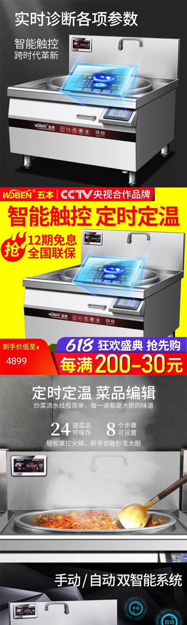 Ультра -мощная коммерческая электромагнитная плита Электрическая плита Smart Touch
