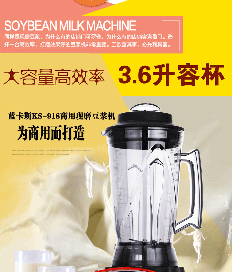 Blue CAS-918 Commercial Soymilk Machine Большая емкость 3,6-литровая микшер высокая мощность 2200 Вт.