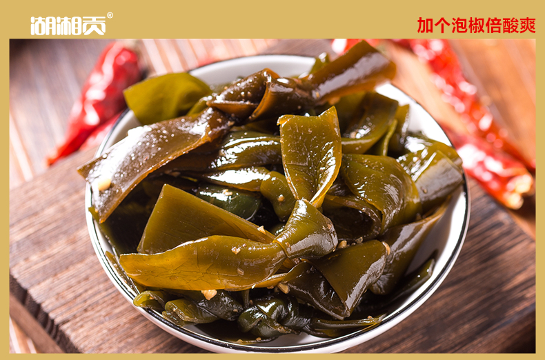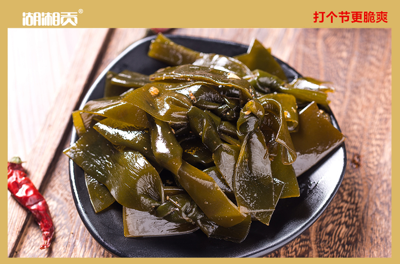 湖湘贡 Изумрудный морской ремень галстук острый кислый маринованный аромат перца 105 г хрустящий шелковый случай повседневные морепродукты, пряные пищевые закуски, закуски