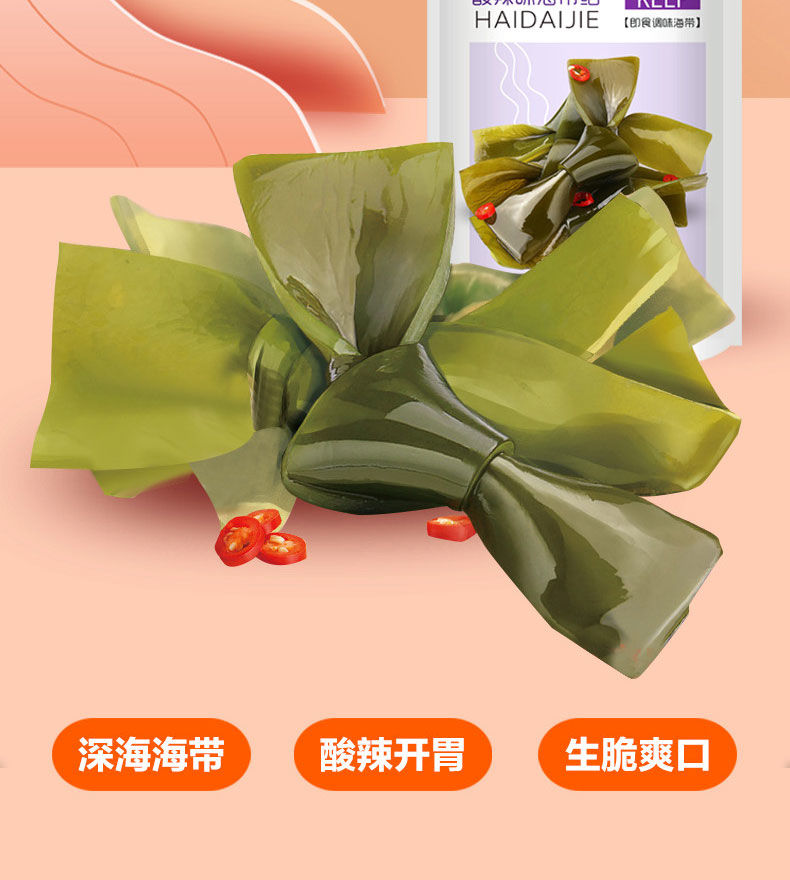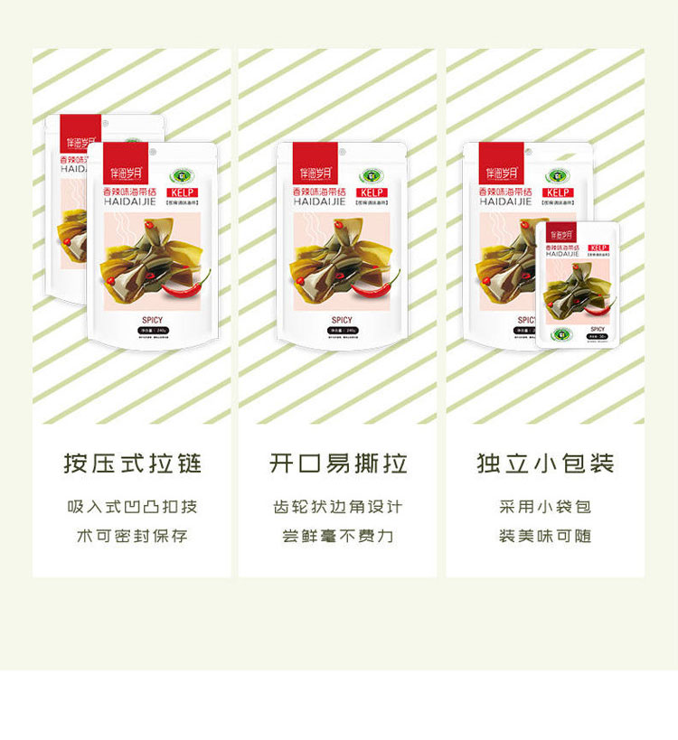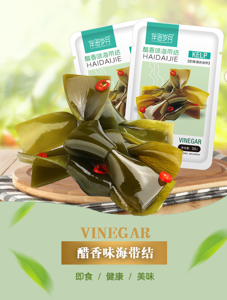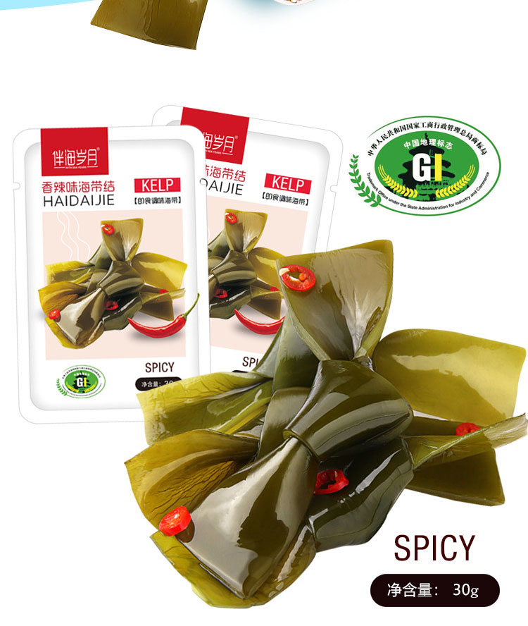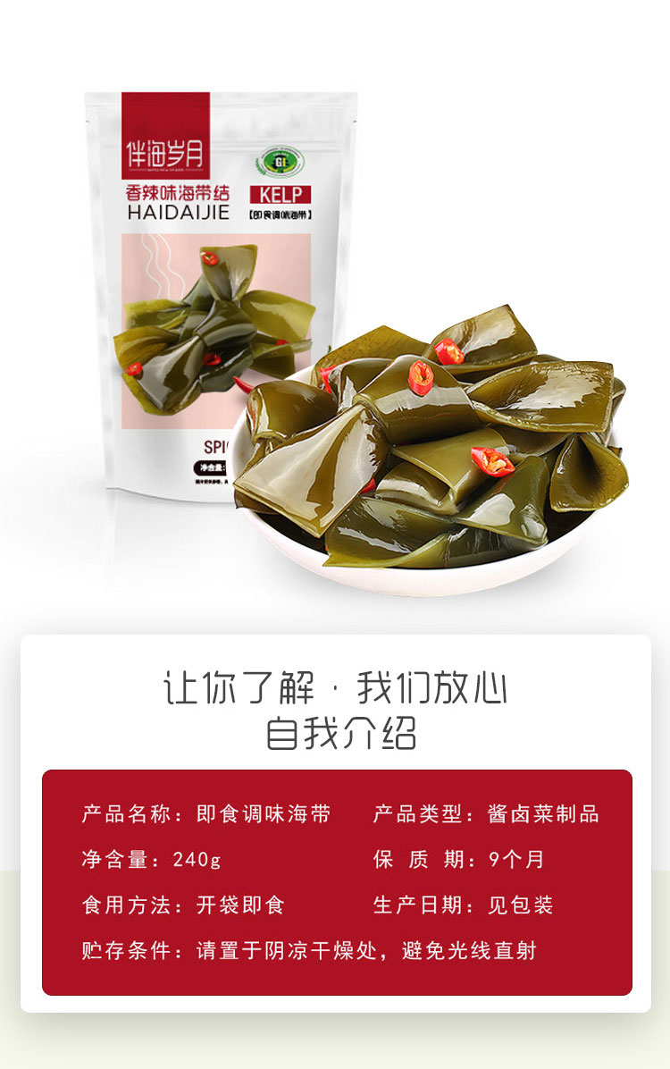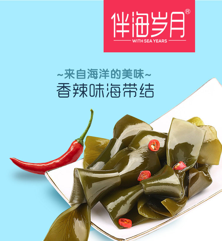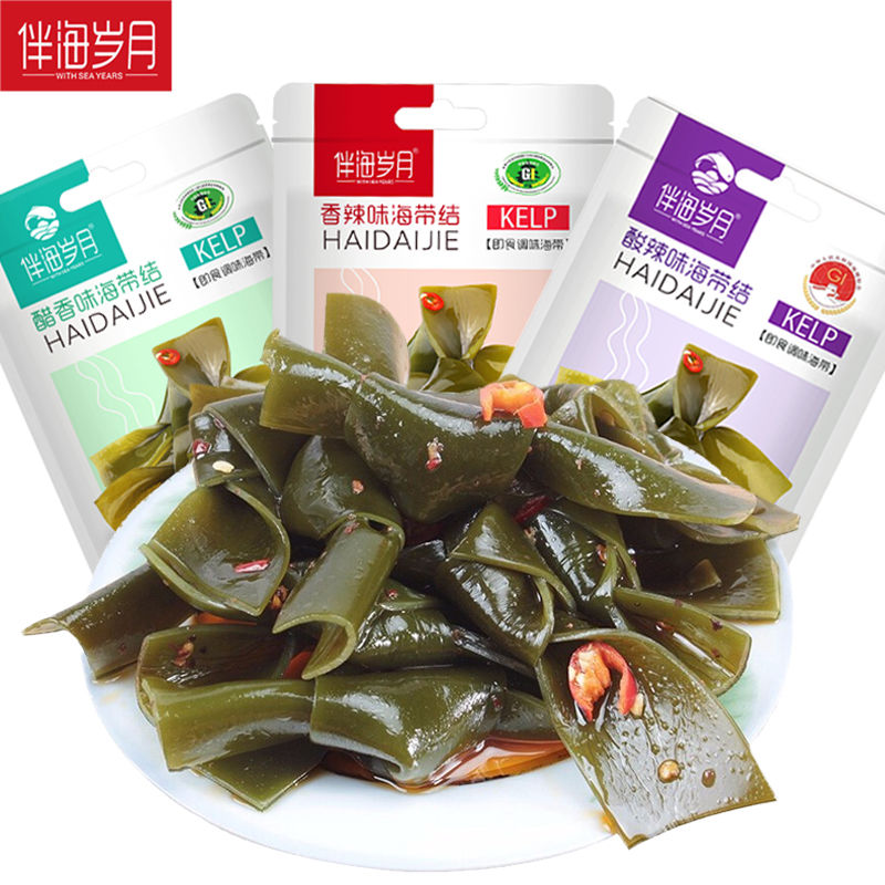 С морскими годами, острый узел морского пояса 240 г маленький упаковочный водоросль, открытые мешки, закуски с едой, повседневные закуски, еда