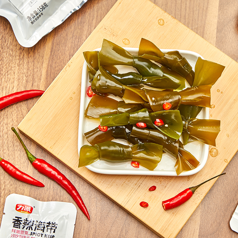 力诚 Острый морской ремень вязание 158 г мгновенные закуски с открытыми мешками закуски маленькие упаковки морепродукты закуски с пряной водорослей