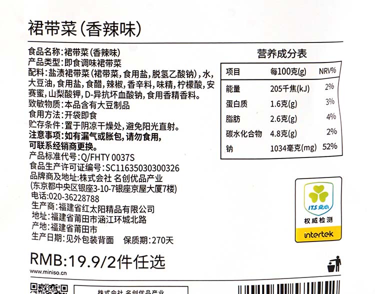 Знаменитая юбка для юбки Chuang Youpin овощная овощная оборотня, еда, закуски, закуски, острые закуски, еда небольшая упаковка