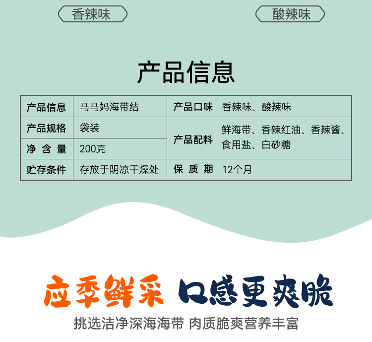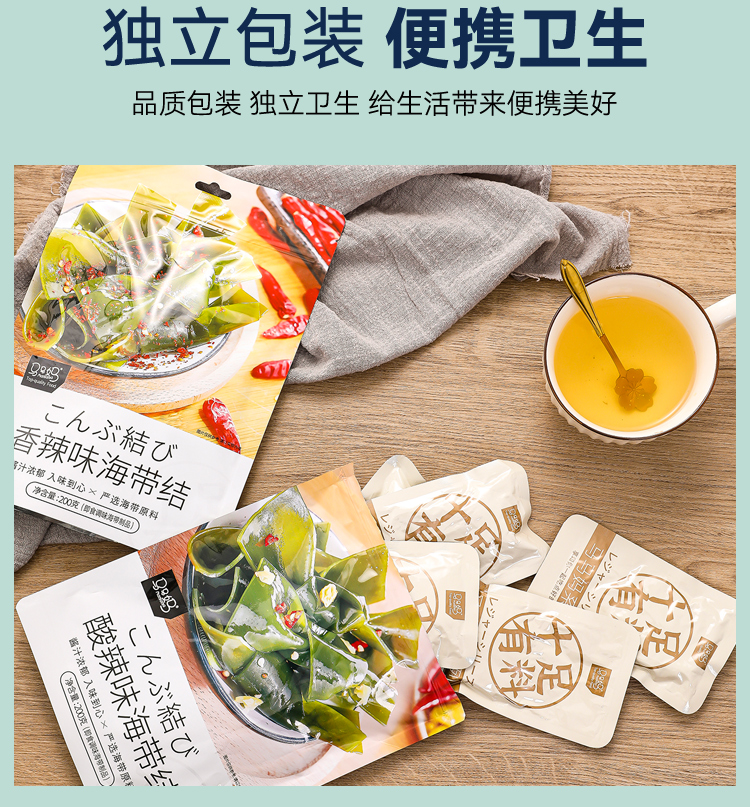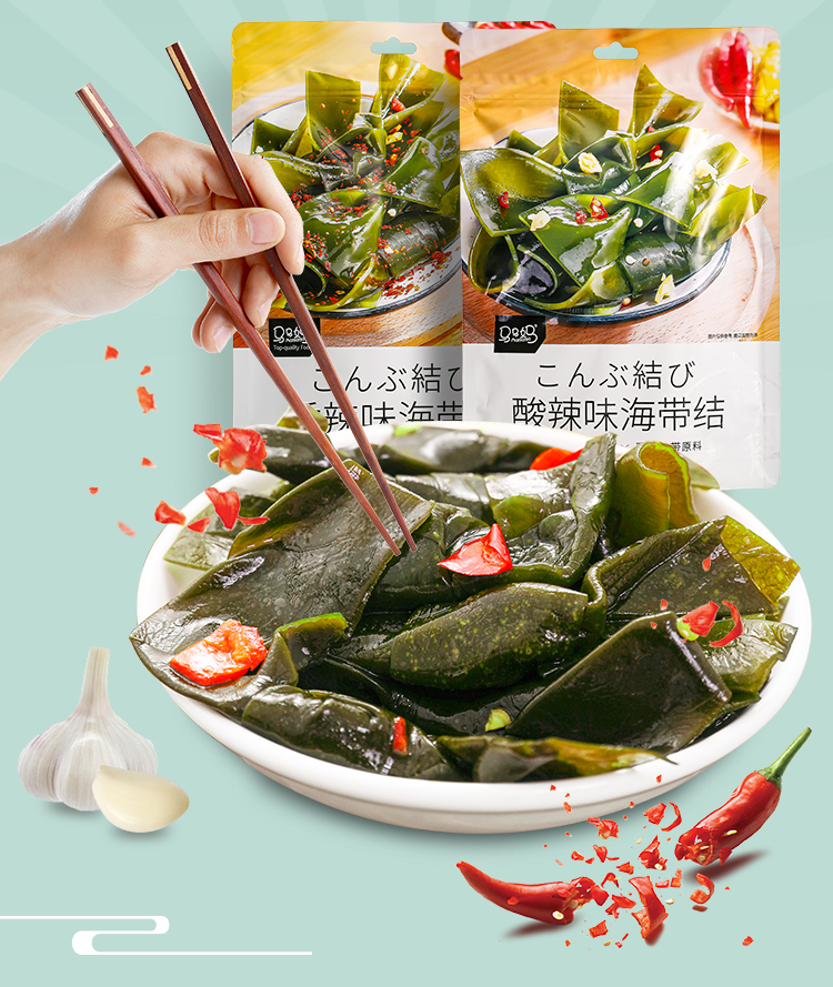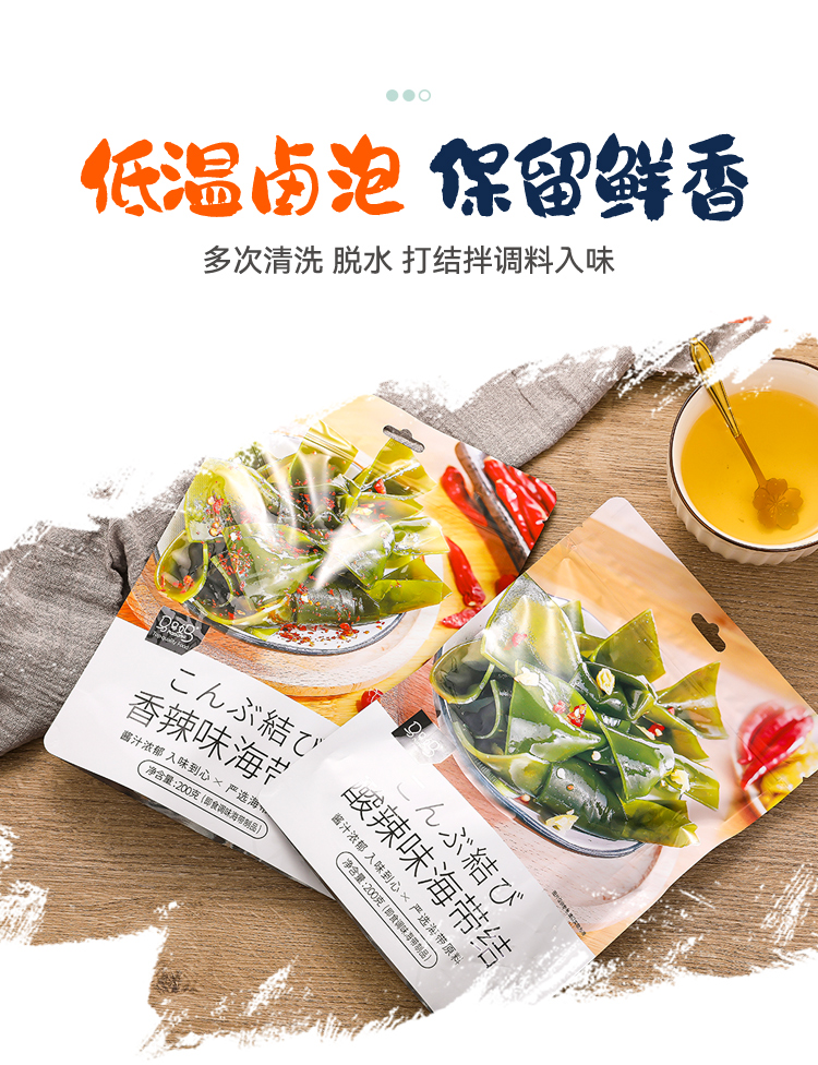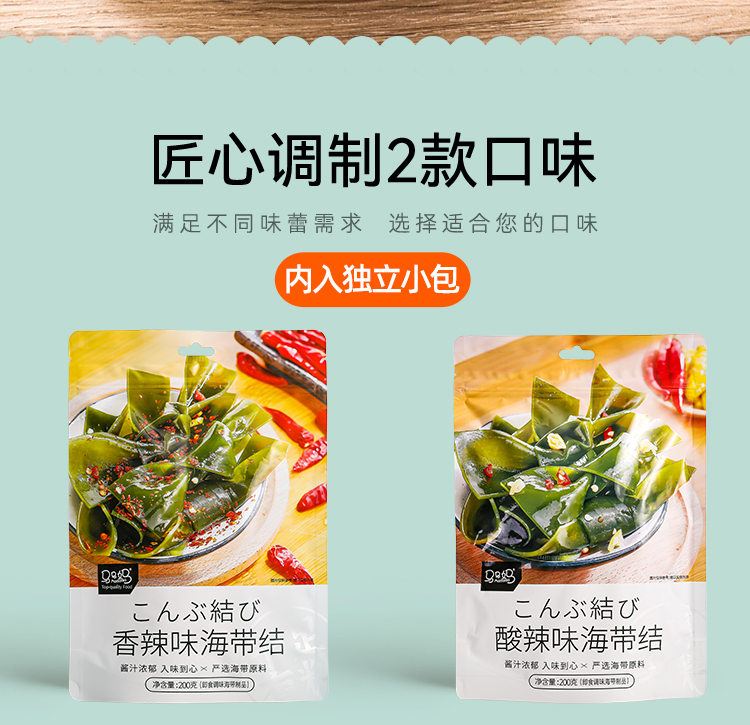 Мазда Матери будут есть горячий и пряный морской ремень Узел 200G*2 мешки с независимыми маленькими мешками Престная рисовая лапша Морской ремень сетка красная закуска пища