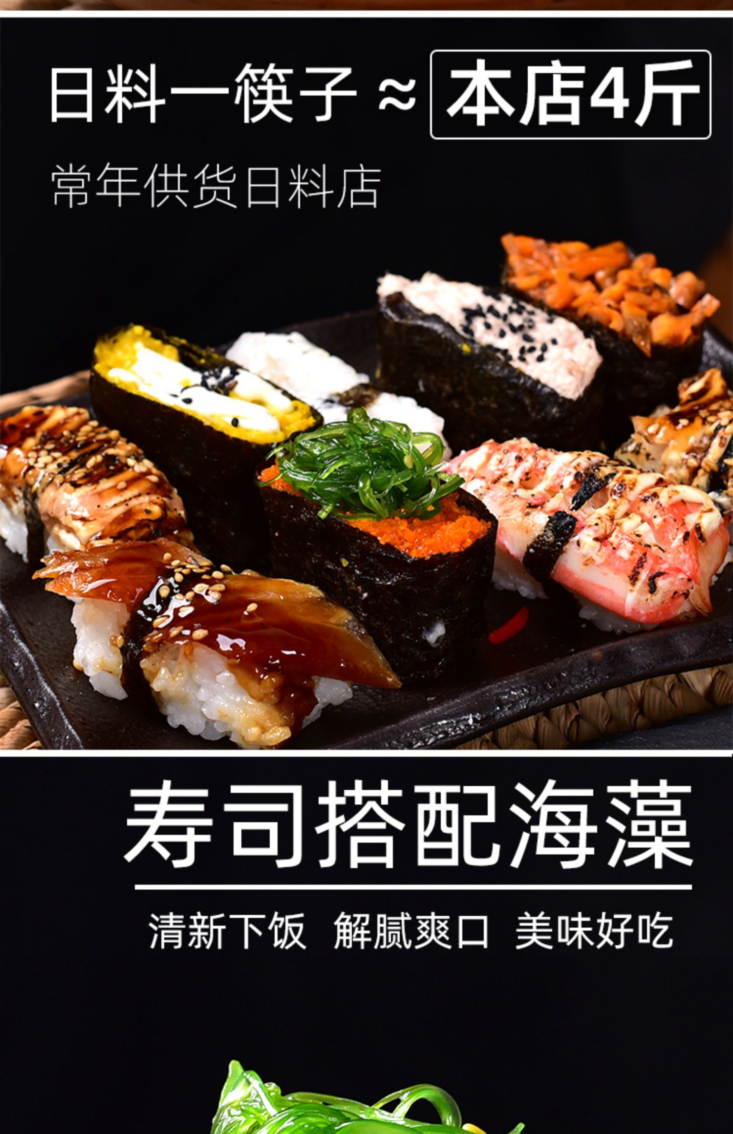 Келиппинские измельченные сумки, платья, овощи, салат из морских водорослей, салат из морских водорослей, китайская морская трава японские ингредиенты суши -морские капуста