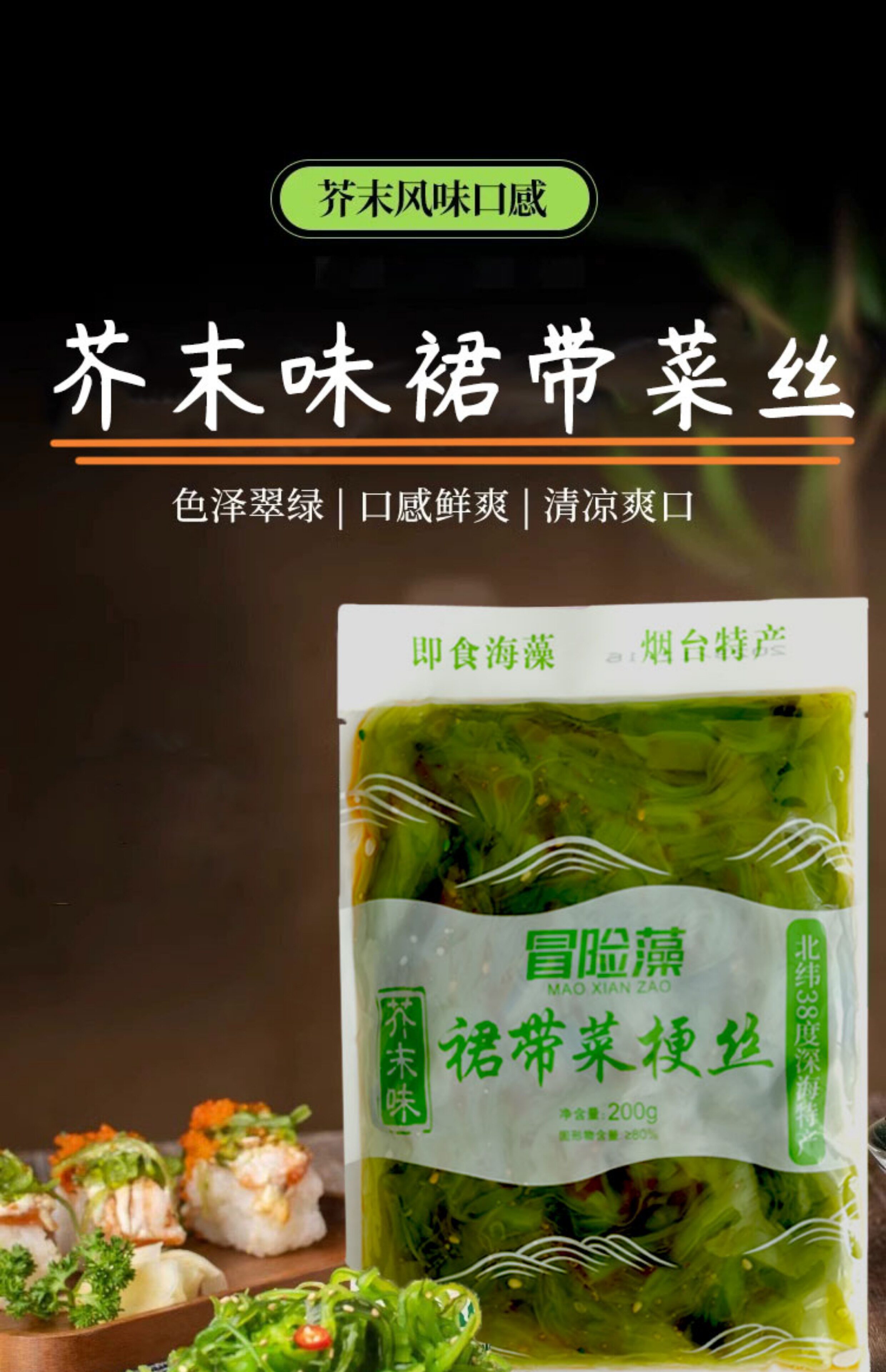 Горчичная юбка с ароматизацией, овощные клочки стебля, морские водоросли шелковые морские водоросли раковина морских водорослей, японские ингредиенты салат -салат -суши открытые сумки закуски