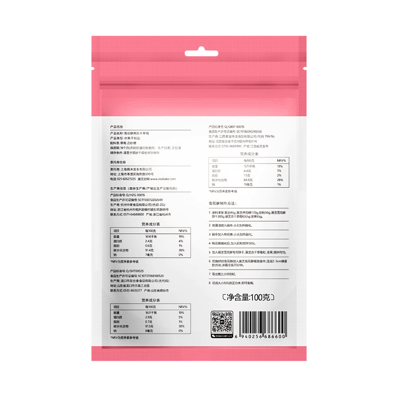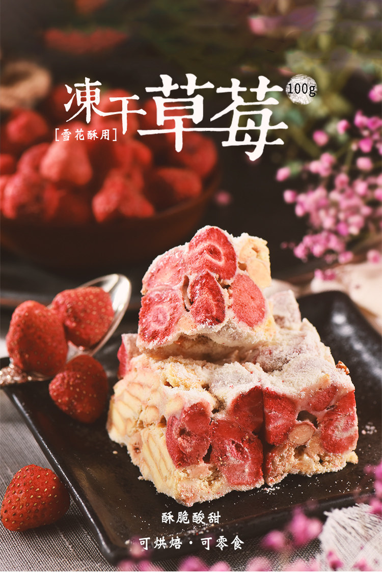 展艺 Сублимированная клубника, сырье для косметических средств, 100G, со снежинками