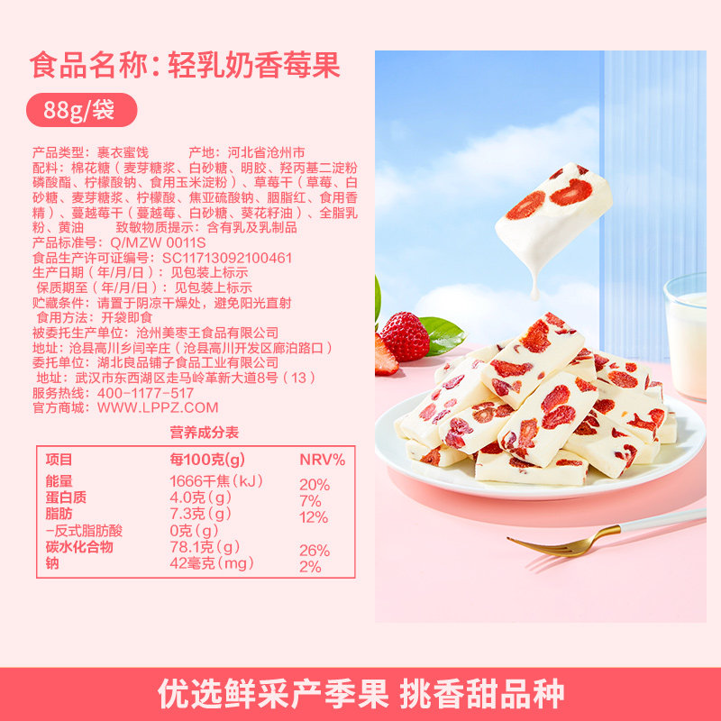 Liangpin Shop Light Milk Milk Fragrant Berry 88 г клубничного сушено
