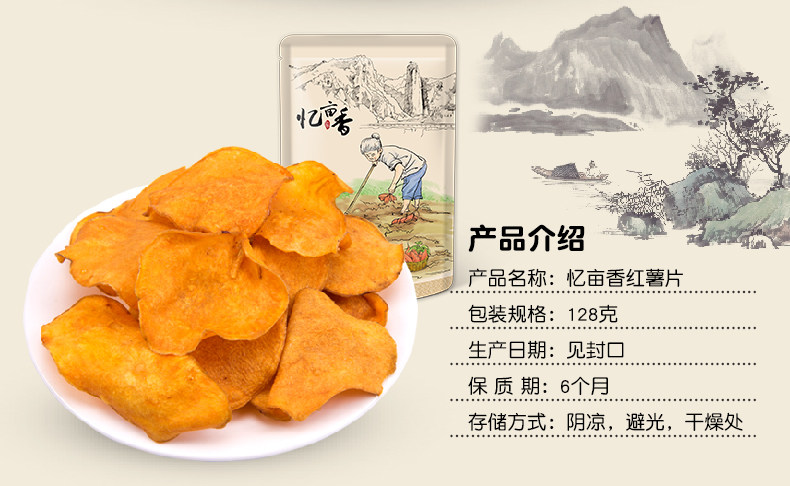 忆亩香 Чипсы из сладкого картофеля 128 г чистой фермы хрустящие чипсы из сладкого картофеля тонкие хрустящие дыни сушеные самостоятельные закуски с закусками с закусками