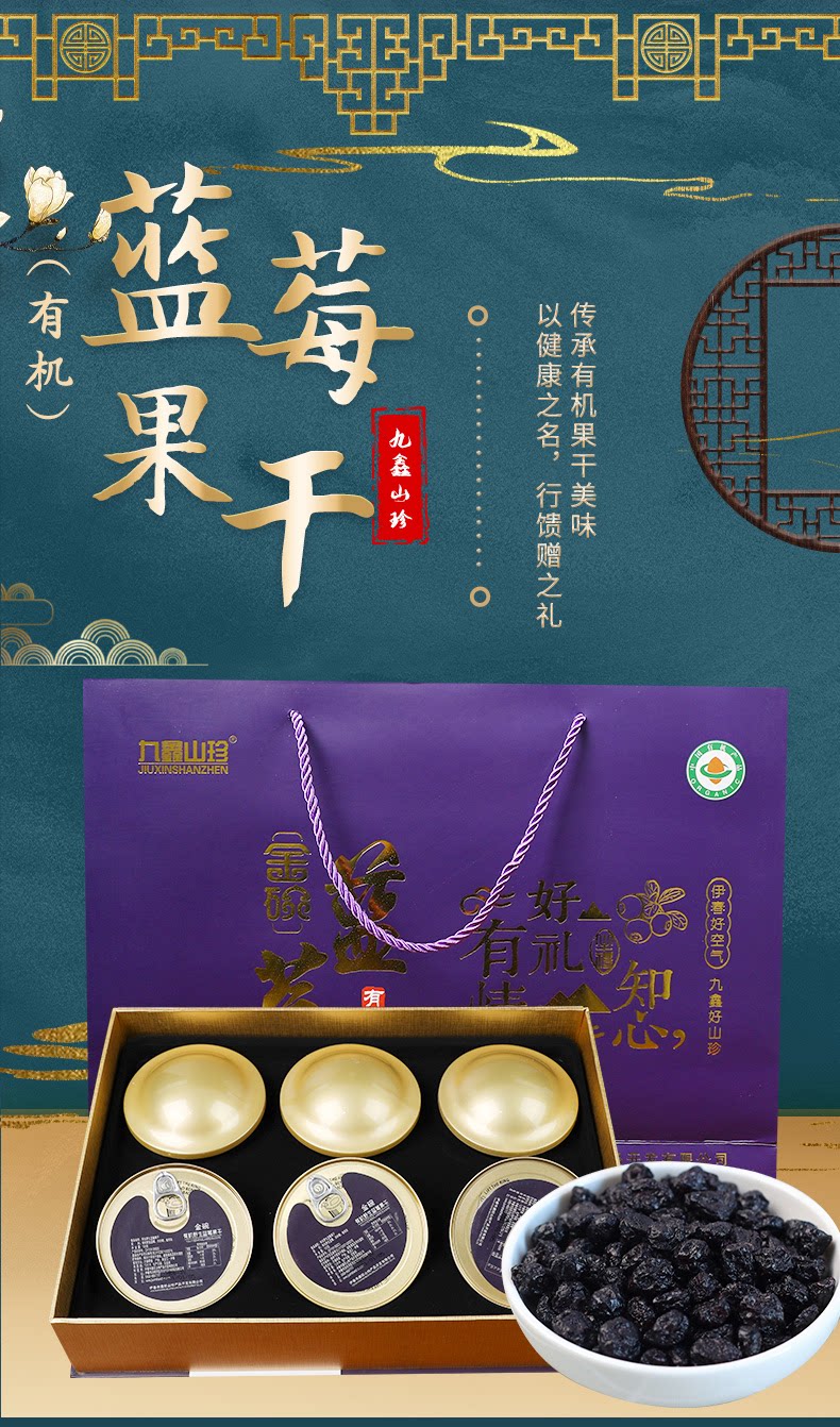 九鑫山珍 Органическая черничная сушеный фрукты размер хинган хребет черника сухой подарочная подарочная коробка с черникой 606 грамм