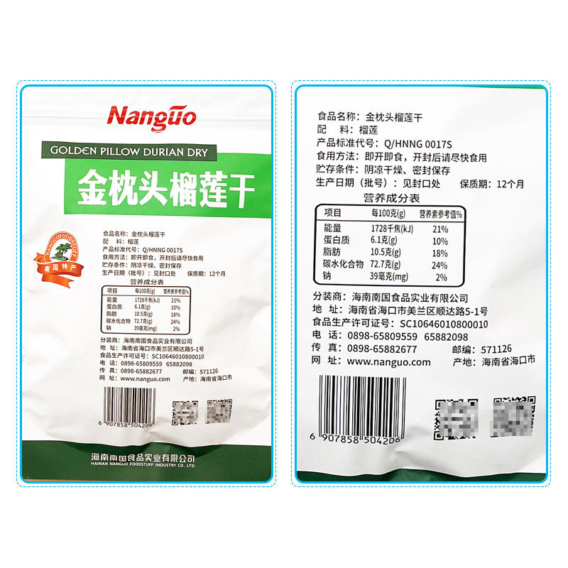 南国 Еда дуриан сухренная 100 грамм (сумка) Золотая подушка Durian сухой