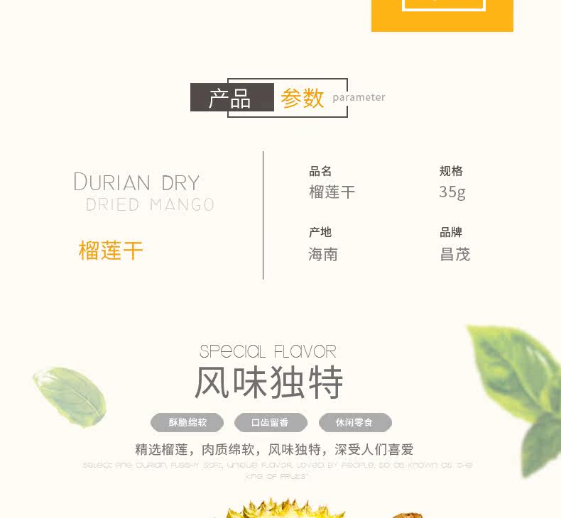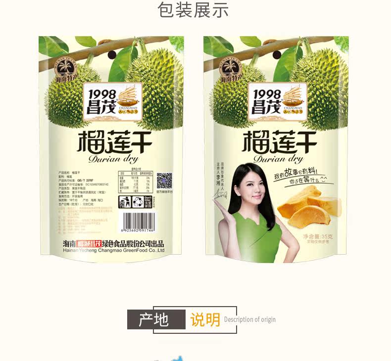 昌茂 Высушенные дуриан 35GX3 мешок замороженных сушеной фрукты золотой подушки Дуриан.