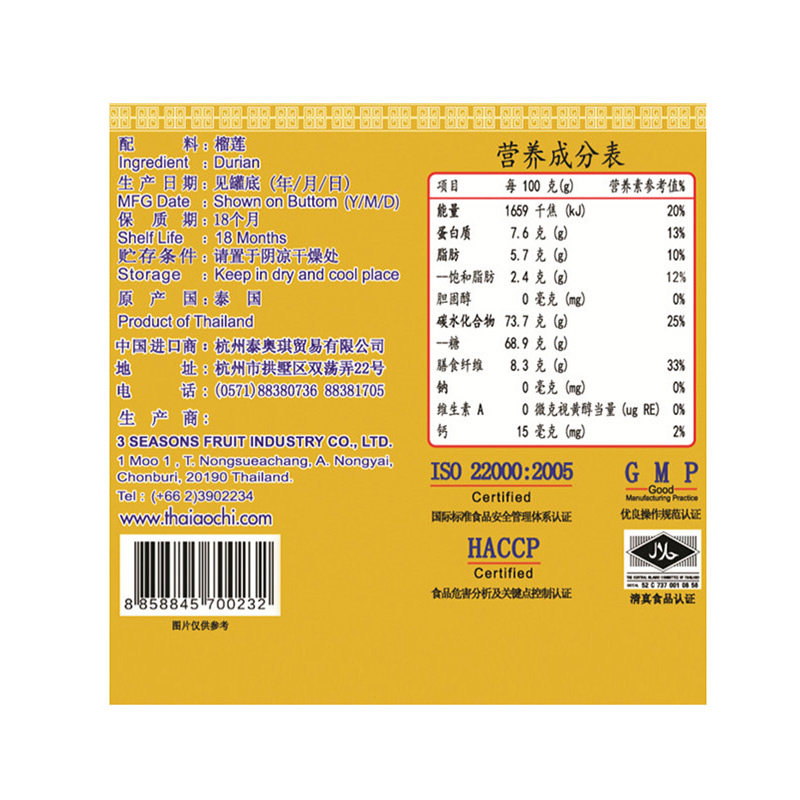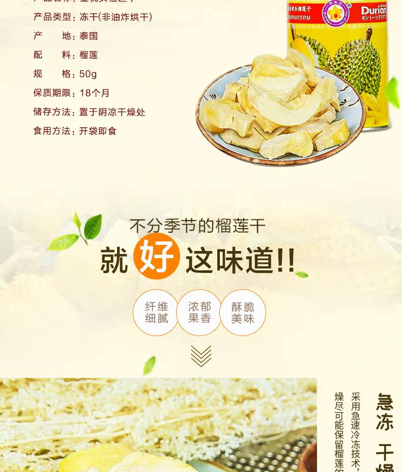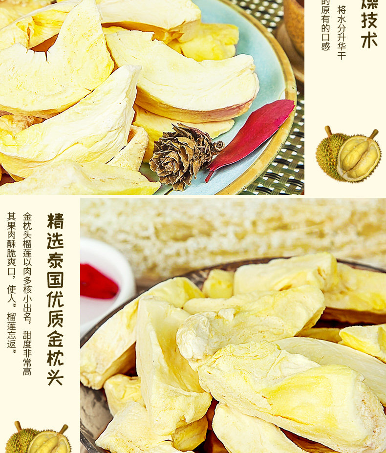 Taioqi Таиланд импортировал золотую подушку класса А, сушеный дуриан, 50 г, специальные пищевые сухофрукты, лиофилизированные новогодние закуски