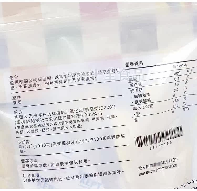 Гонконг наверху [Оригинальный хрустящий дуриан в Таиланде] 100 граммов сухой сухой