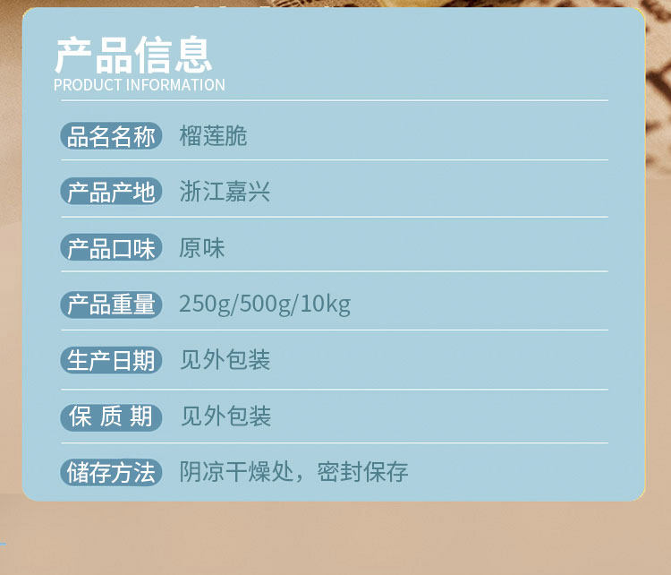 | Еда: | Сублимированный дуриан 50г*1 пакетик [дегустационный пакетик], Сублимированный дуриан 50г*2 пакетика [без влагопоглотителя], Сублимированный дуриан 250г*1 пакетик [нетто-половина кошачьего], Сублимированный дуриан 250 г*2 пакетика [содержание нетто на фунт], Сублимированный дуриан 250 г*4 пакета [вес нетто 2 фунта], Сублимированный дуриан 170г*1 банка [содержимое нетто/банка], Сублимированный дуриан 170г*2 банки [содержимое нетто/банка], Сублимированный дуриан 170г*3 банки [содержимое нетто/банка], Дуриан сублимированные ломтики 88г*1 пакетик [хрустящие и ароматные], Сублимированные ломтики дуриана 88 г*2 пакета [достаточное содержание нетто], Дуриан сублимированный ломтики 88г*5 пакетиков [рекомендуется для массовых продавцов], (Около 9-25 мм) сублимированные измельченные фрукты дуриана 50 г * 1 пакетик, (Около 9-25 мм) Замороженный сушеные фрукты Durian 150 г*1 сумка, (Около 9-25 мм) сублимированные измельченные фрукты дуриана 250 г*1 пакетик |