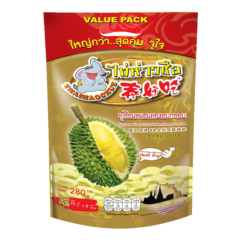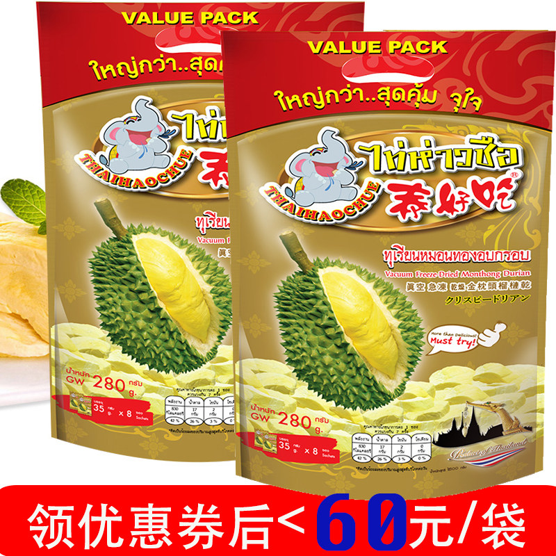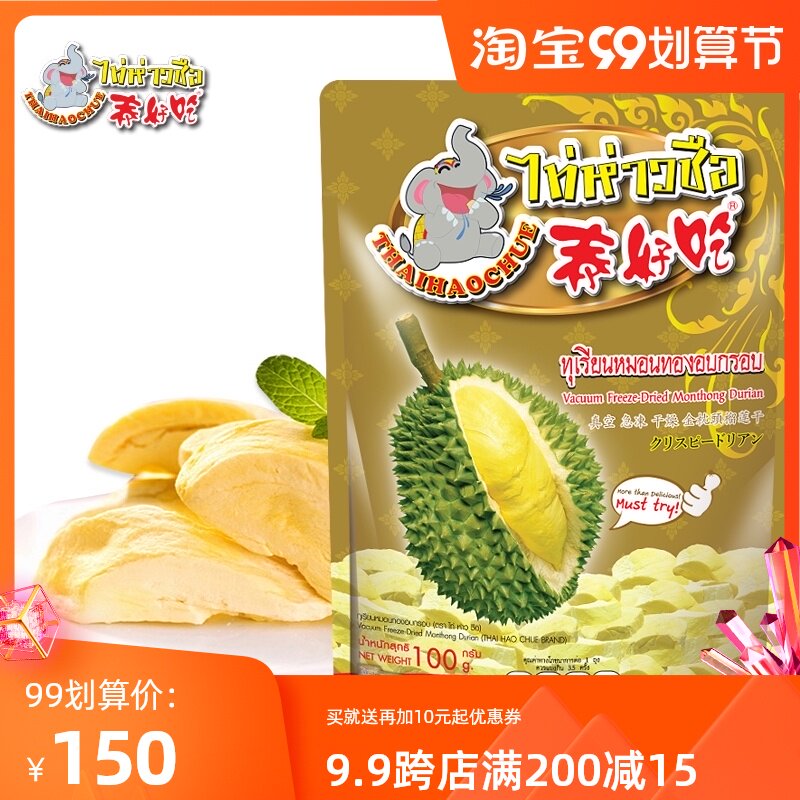 2 большие мешки Таиланда Импортированные тайские вкусные золотые подушки Durian Dry Crisp 100 г фруктовых короля короля вакуум -заморозка заморожены