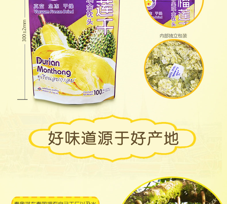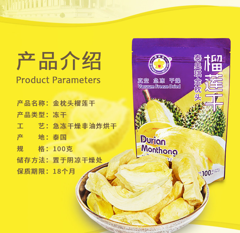 Thai Aoqi Золотая подушка Durian Dry 100g*3 Таиланд импортированные замороженные Durian Special Foods Special Special Special Snacks