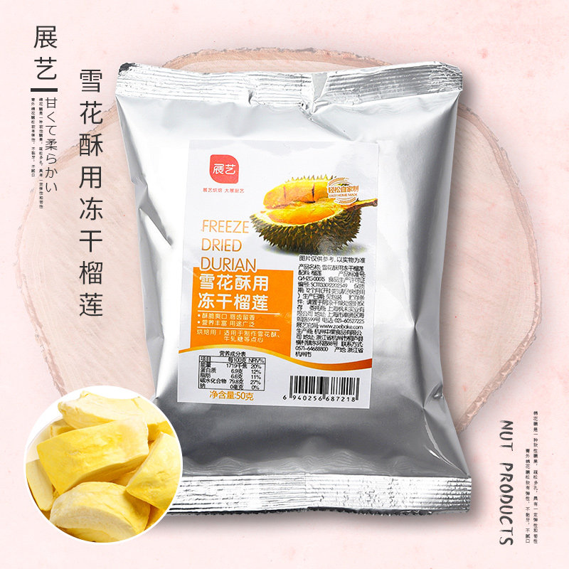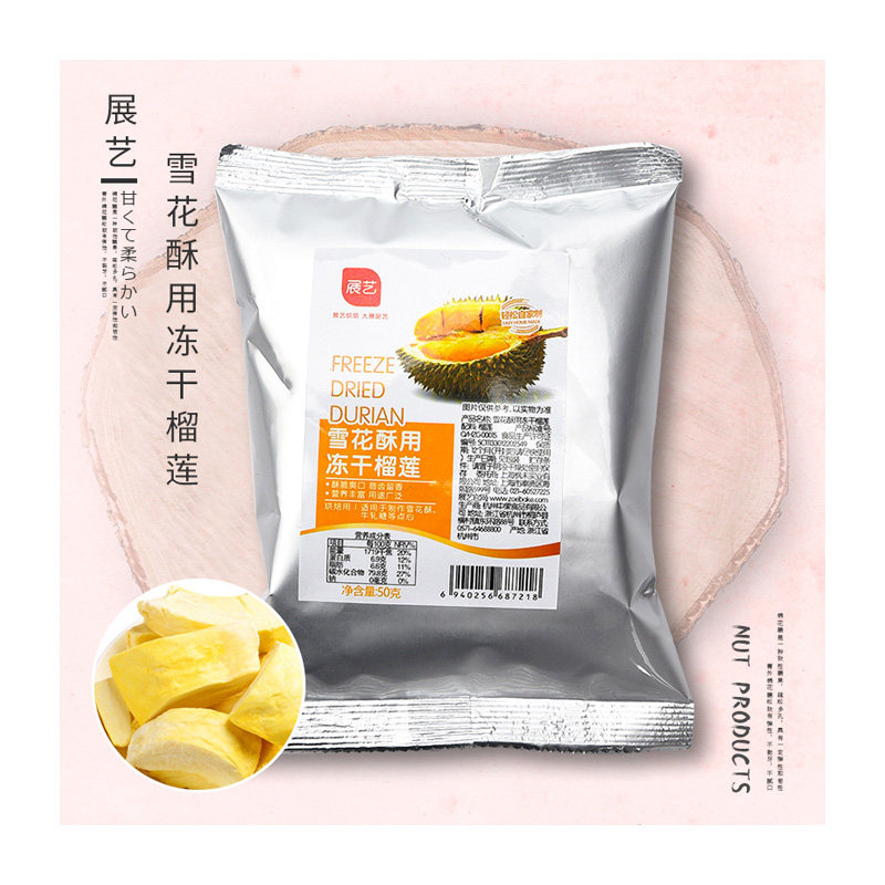 Zhanyi Frozen Durian 50G Сделайте говяжий галстук снежинок хрустящий печенье, материалы для коров, хрустящие и освежающие закуски