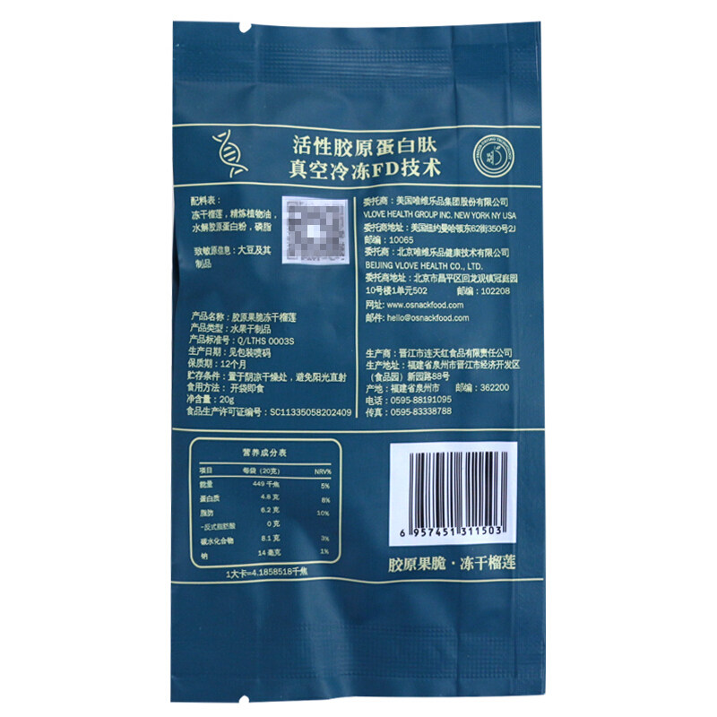Оснак коллагеновые фрукты хрустящие сахарные коллаген замороженные дуриан -клубничные закуски фруктов