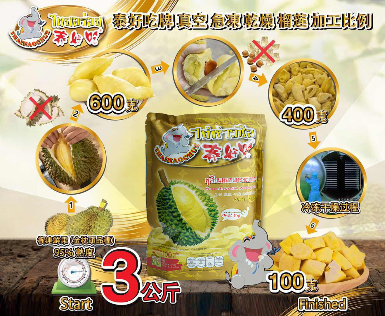 Таиланд Тайская утка Золотая подушка Аа класс Durian 100G Weight*3 большая сумка Оригинальные подлинные вакуумные замороженные закуски