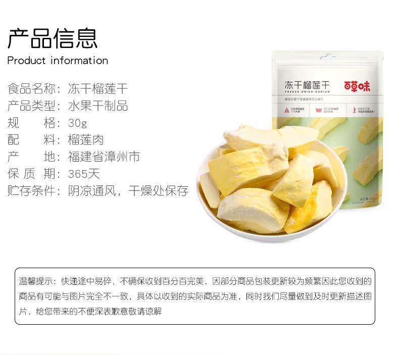 Бейкао ароматизированные замороженные дуриан сушеной дуриан 30 г специальных повседневных фруктов сушено