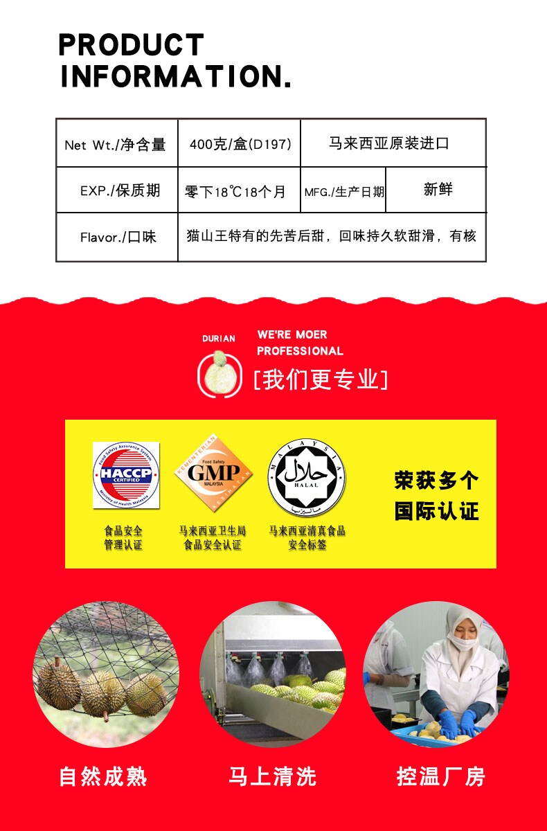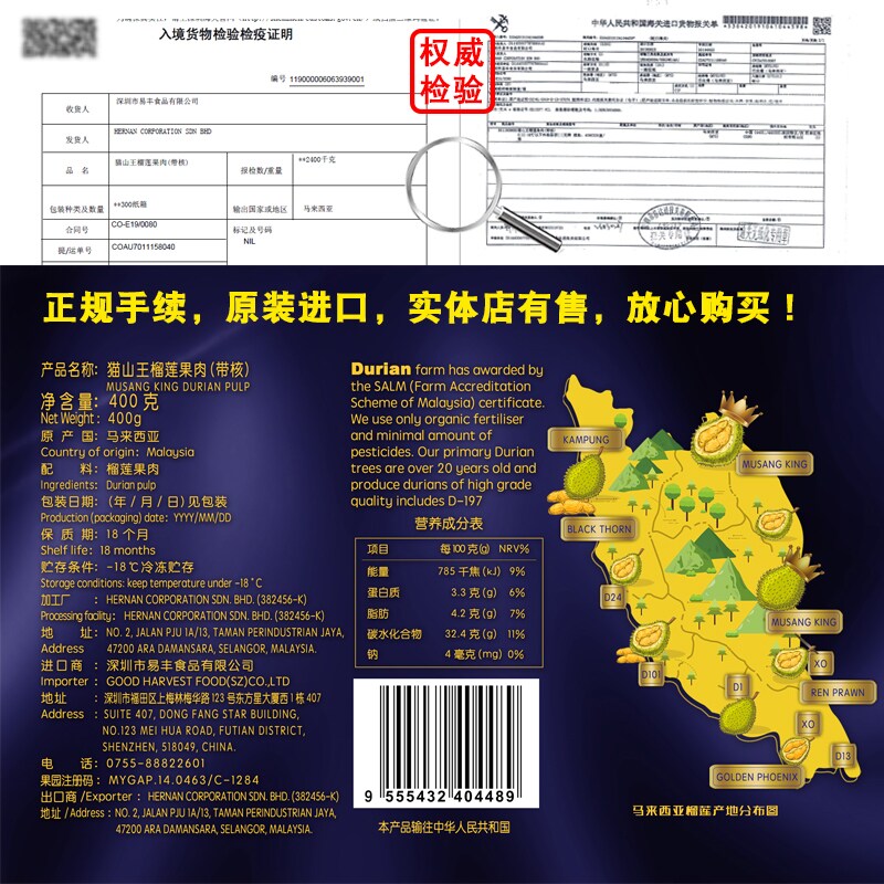 | Еда: | Матшан король Дуриан 400G*1 коробка, Матшан король Дуриан 400 грамм*2 коробки |