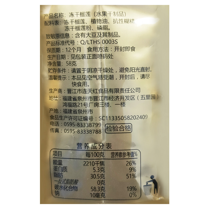 - Замороженный сушеный дуриан 58G*1 сумка.
