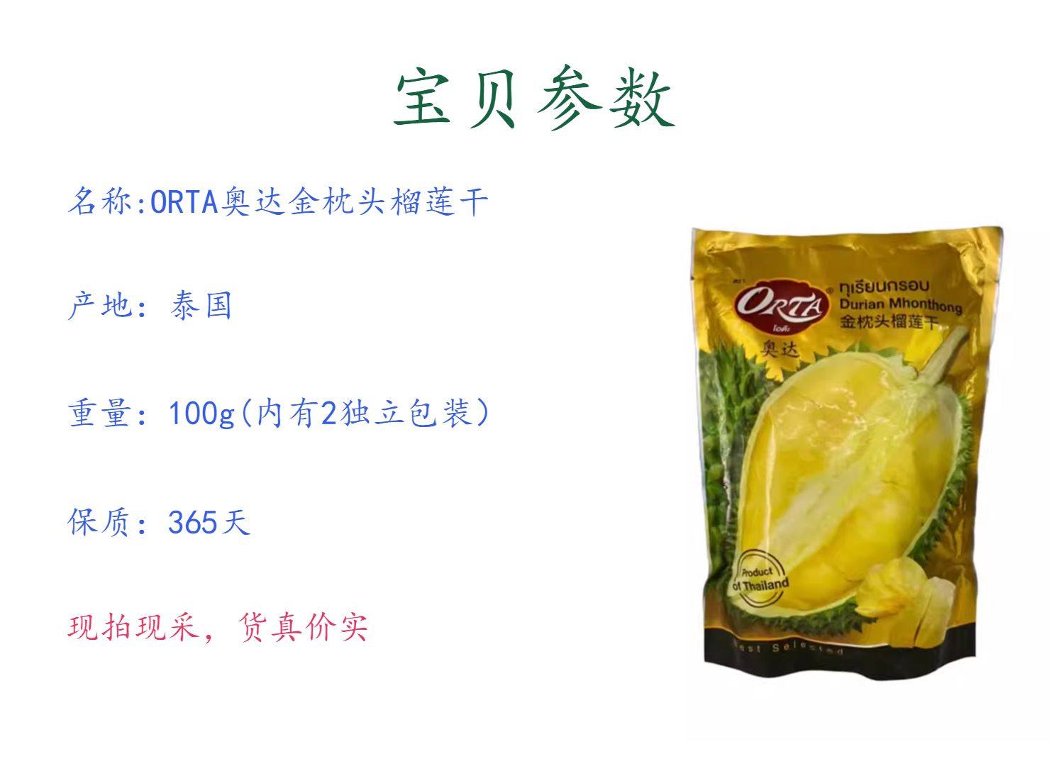 Таиланд прямая почтовая почта Orta Oda Jin Pillow Durian Durian Dry Goldrated Dehydrated Crispy 100g Две независимые упаковки бесплатная доставка
