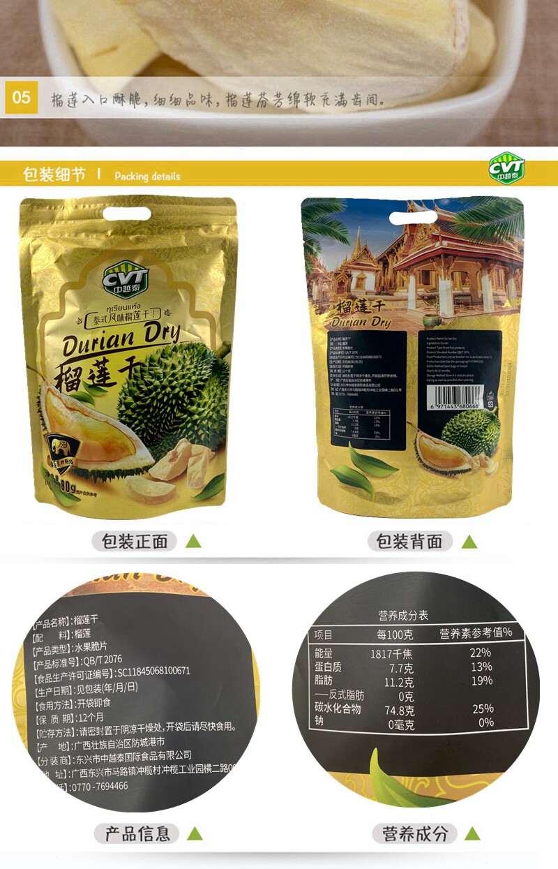 Тайский аромат CVT Китай -Вьетнам Тайский дуриан сушеные 80 г замороженные сушеные фрукты Специальные фрукты. Случайные закуски новогодние товары бесплатная доставка