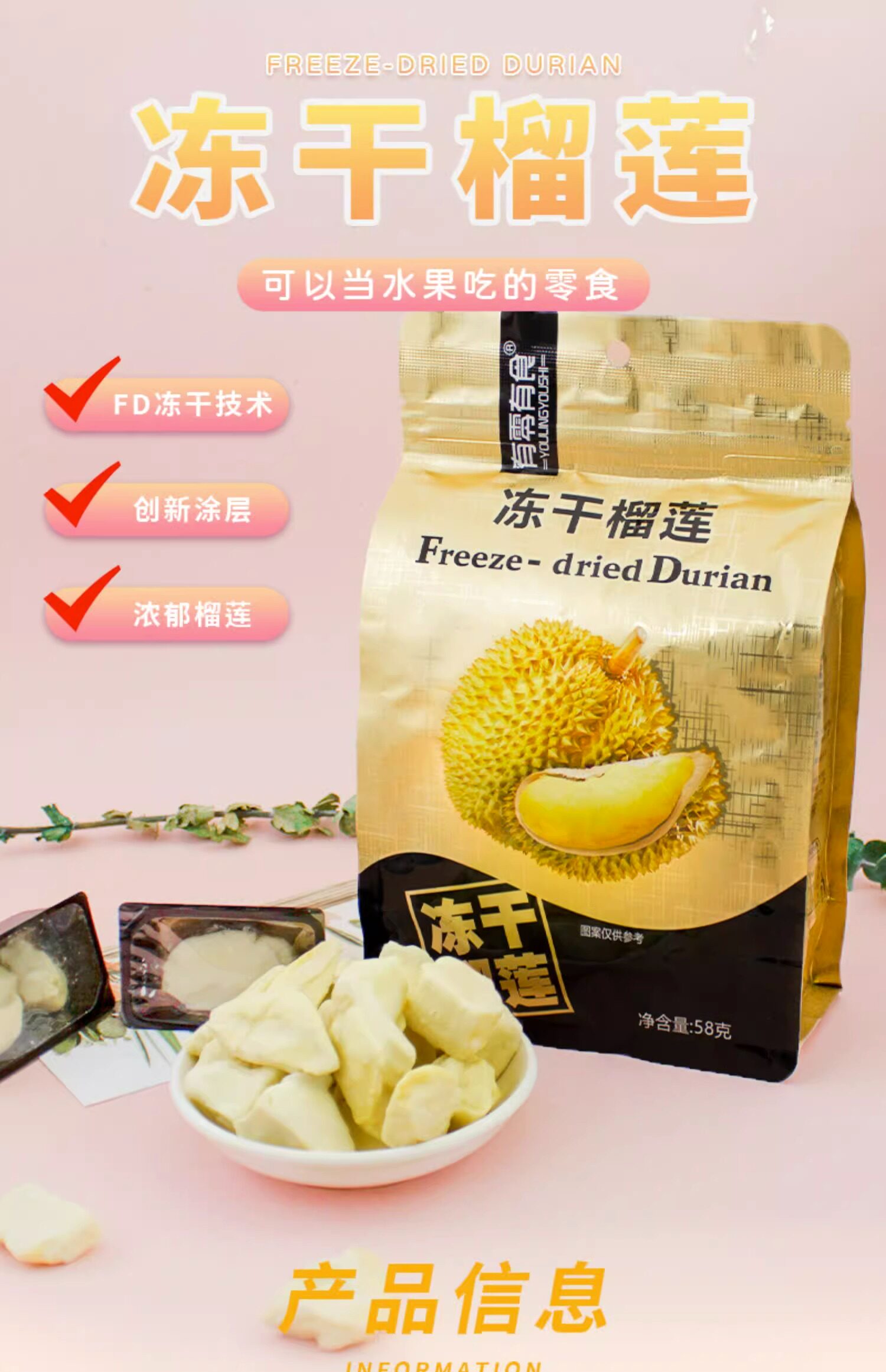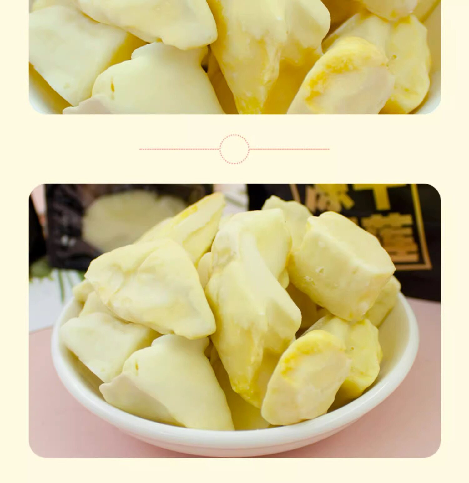 有零有食 Осуществил орисованные дюриан Тайская золотая подушка фрукты сушеные блоки йогурта.