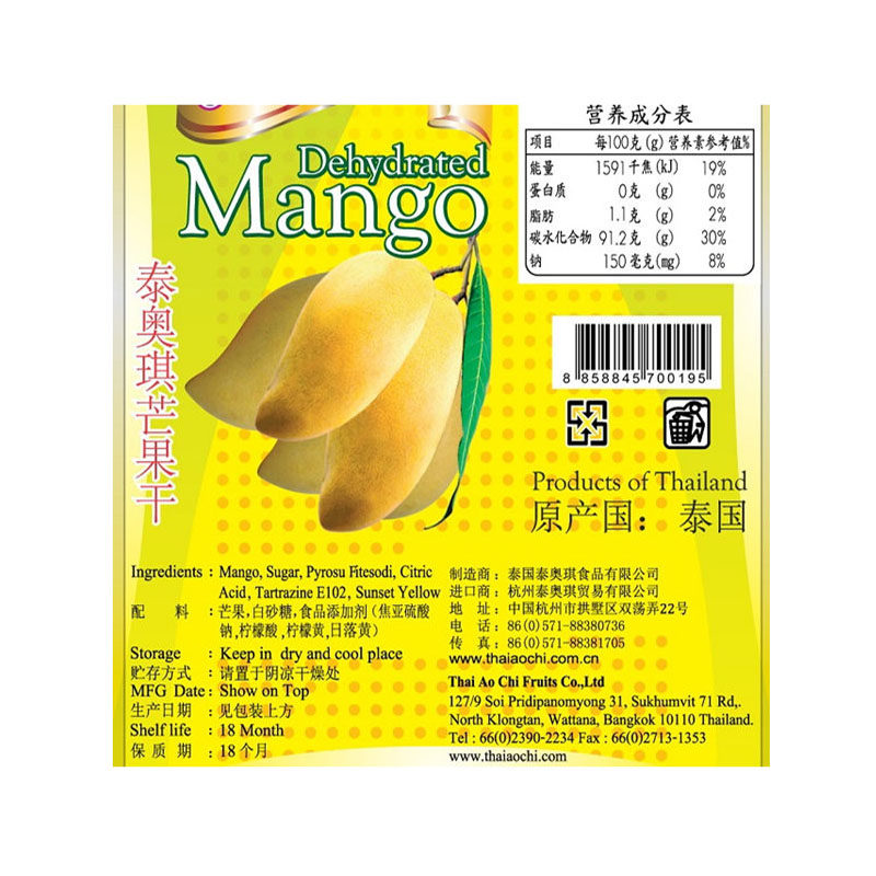 Thai Aoqi Mango 150 г мешок установлен с Таиландом, импортированным медовым фруктом, сохраненным водяным сказочным манго, новогодние крем.