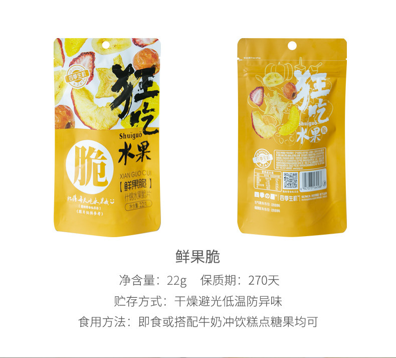 | Еда: | Свежие фрукты хрустящие 22 г × 3, Свежие фрукты хрустящие 22 г × 5 |