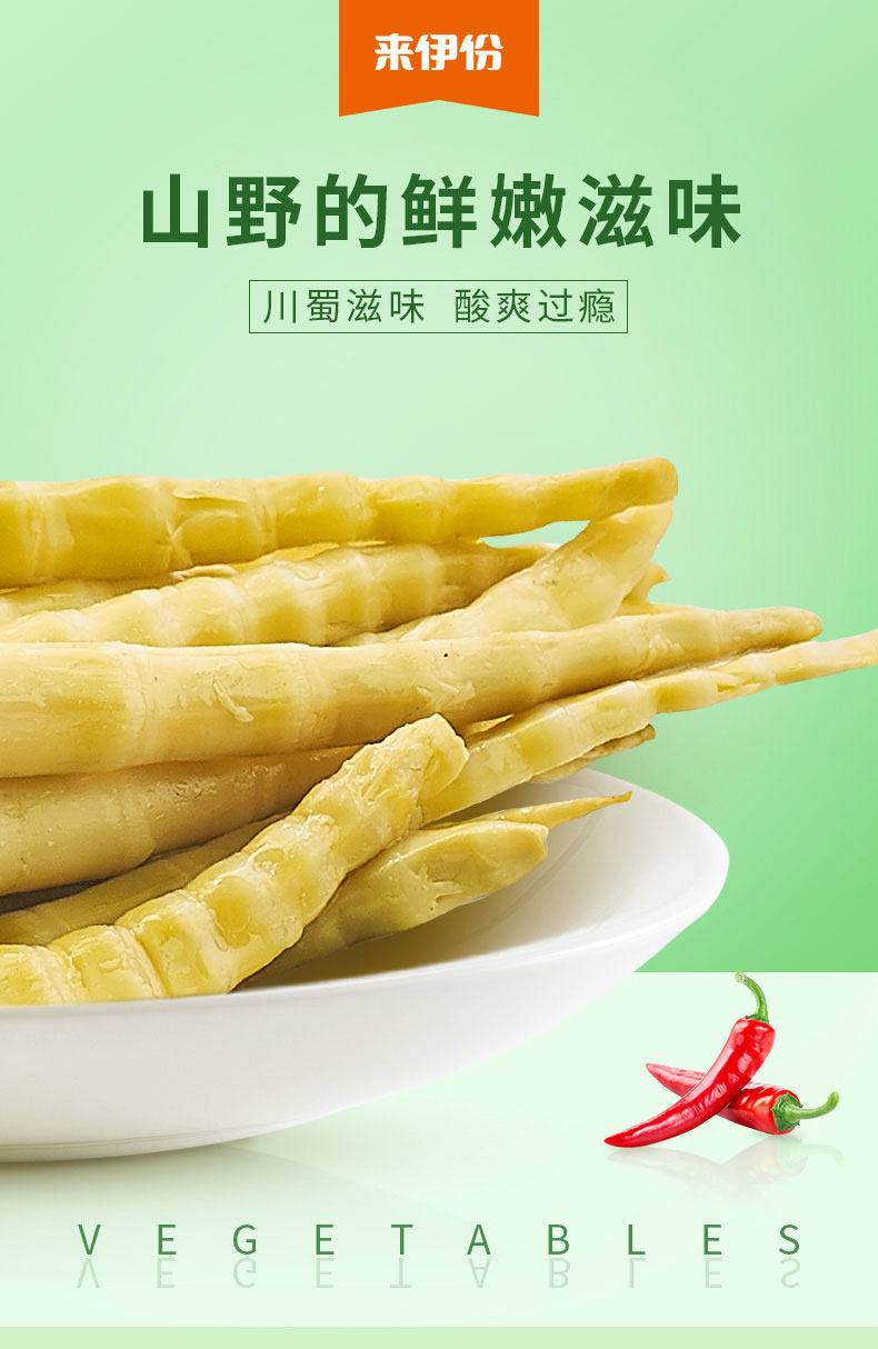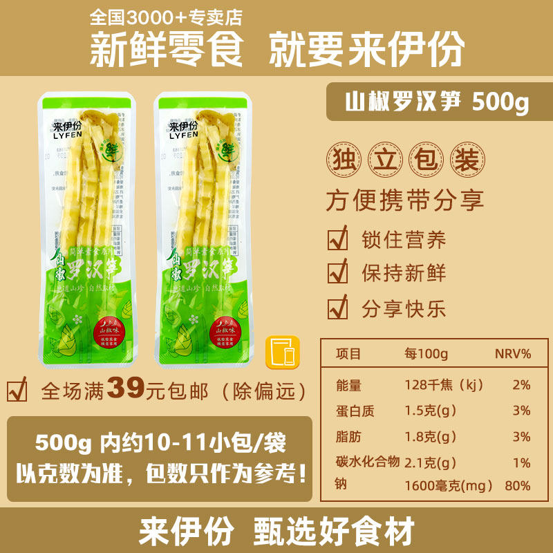 来伊份 Горный перец Луо Хан Бамбук Стрельба 500G Собственные закуски горные хрустящие бамбуковые съемки