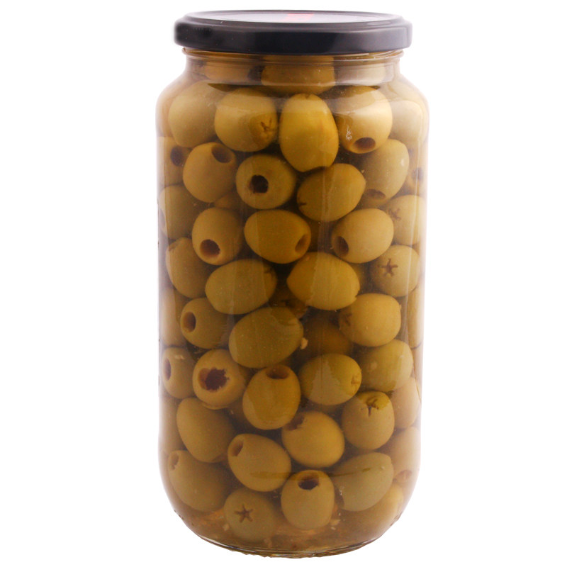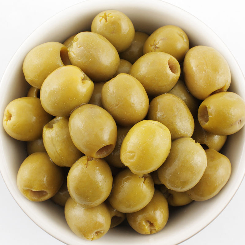 Испанские оливки с зелеными на ядерно мариновано зеленый олив.