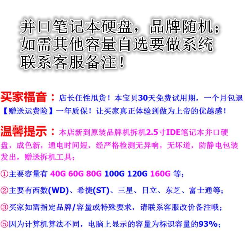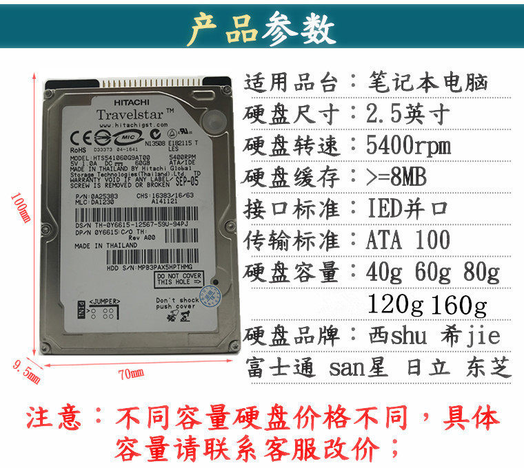 Механический ноутбук, 40G, 2.5 дюймов, 100G, 60G