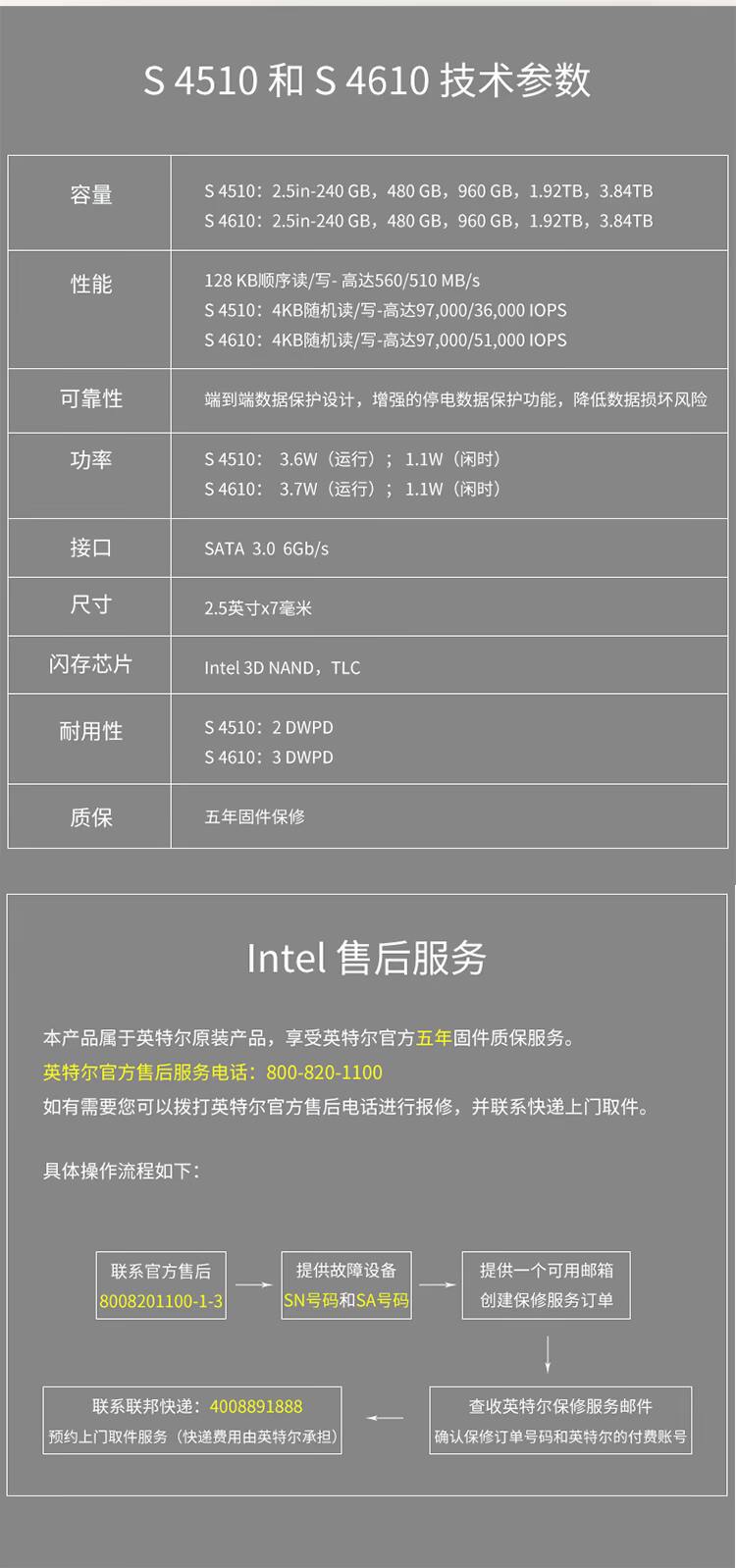 Intel/Intel DC S4610 960G SATA Enterprise SSDSC2KG960G801 SPOT