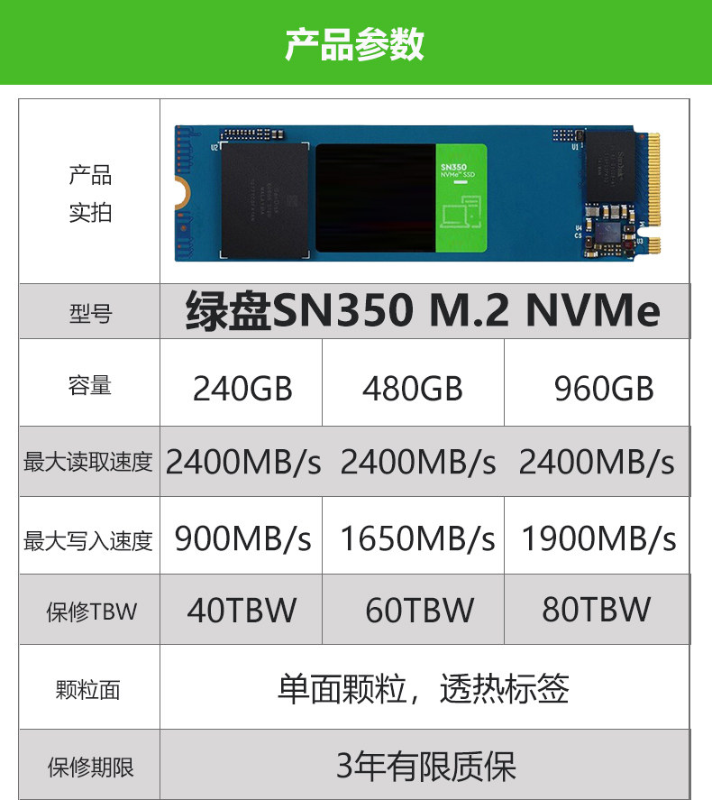 WD/Western Data SN350 Зеленый диск M.2 NVME 240G 480G 960G PCIE SOLID SSD жесткий диск