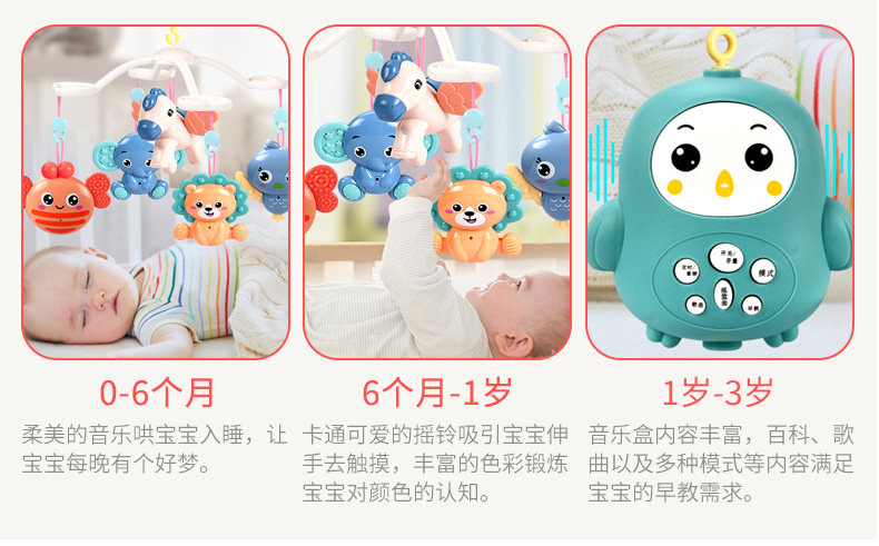 Кроватка для новорожденных, детская музыкальная игрушка на кроватку, крутящаяся погремушка для кровати, 0-1 лет, 3-6-12 мес.