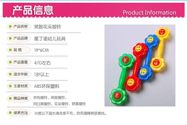 Гимнастические гантели для раннего возраста, детская погремушка для спортзала, пластиковый браслет, в цветочек, со звуком, оборудование для утренней гимнастики