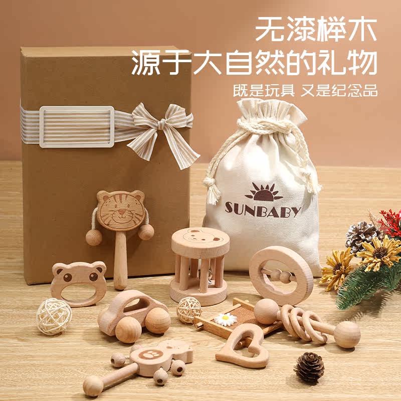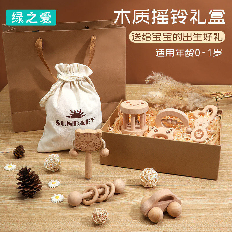 Деревянная погремушка для новорожденных, игрушка для младенца, подарок на день рождения, 0-1 лет, 0-3 мес., раннее развитие