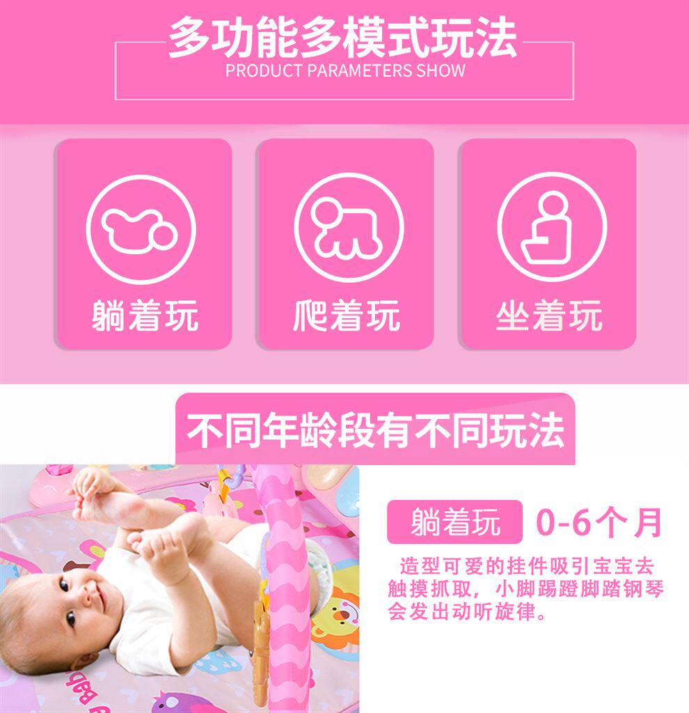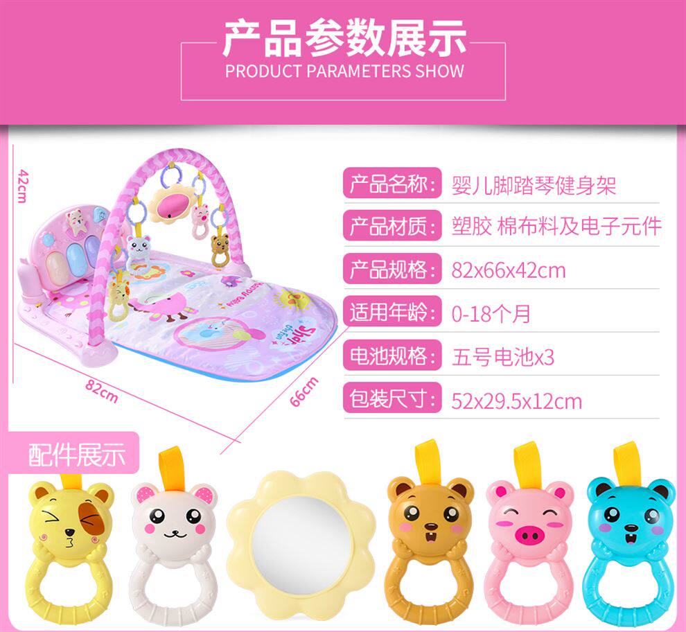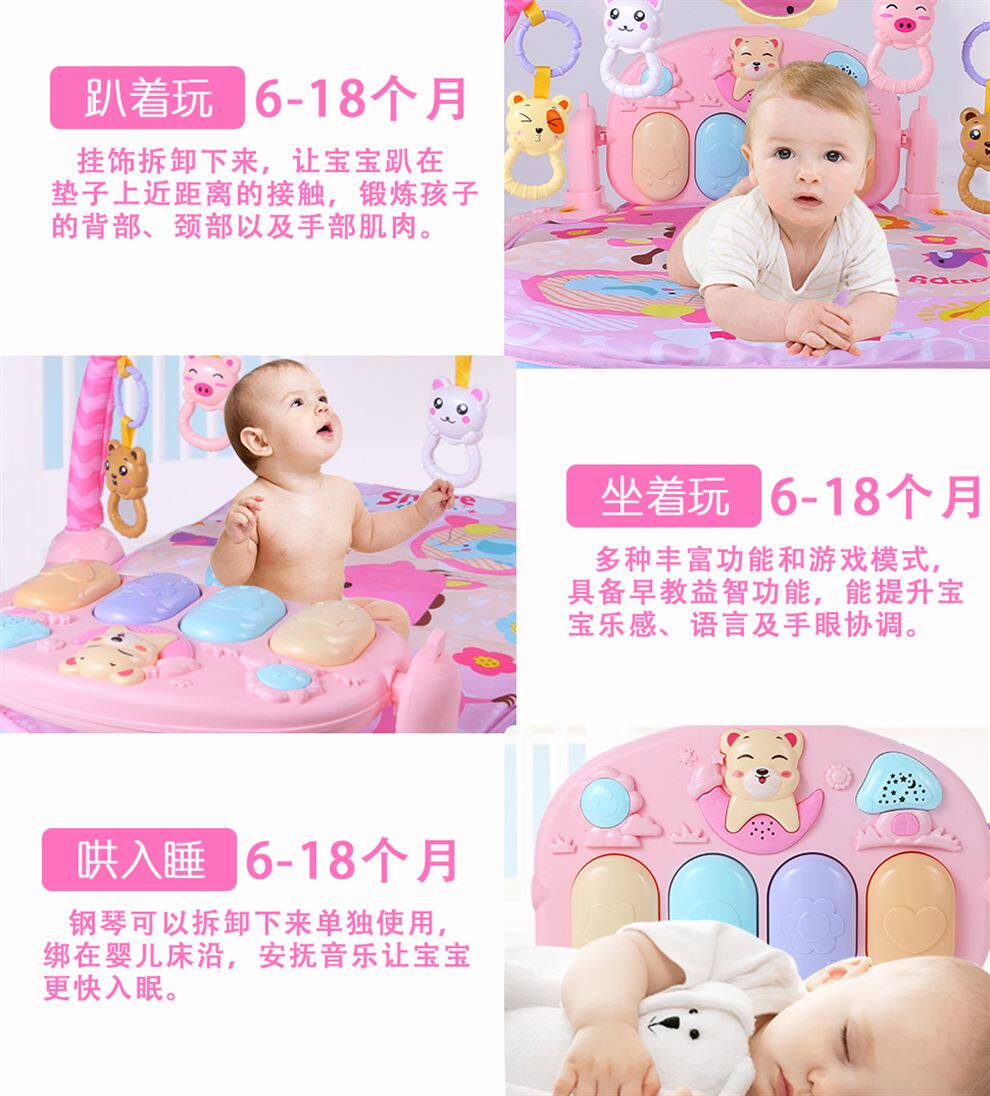 Пианино для новорожденных для младенца для спортзала, музыкальная игрушка для мальчиков и девочек, раннее развитие, 0-3-6-12 мес.