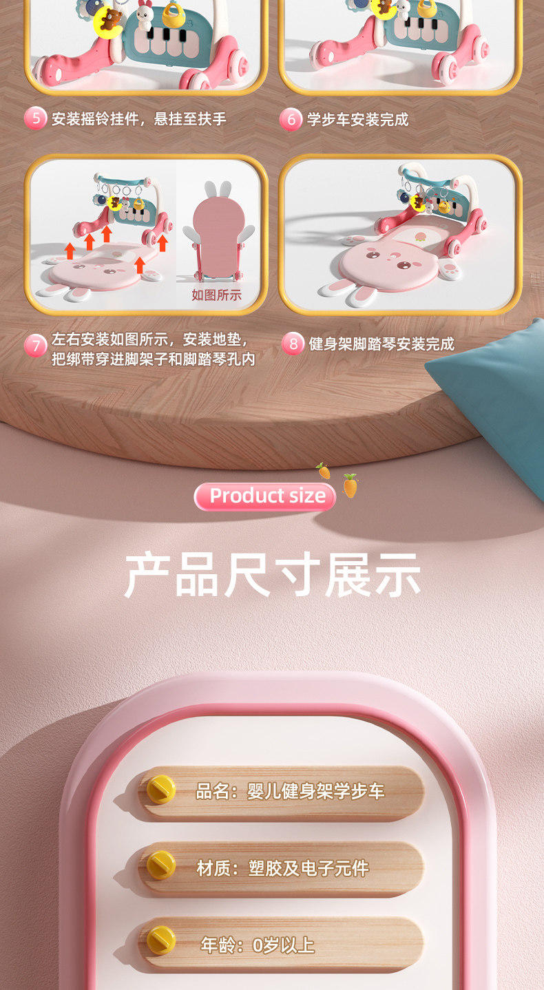 Детское пианино для спортзала, ходунки для новорожденных для раннего возраста, детская игрушка, 0-1 лет, 3-6 мес., раннее развитие