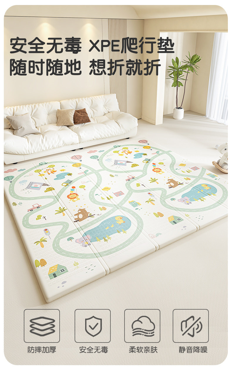 Детский нетоксичный игровой коврик для ползания для домашнего использования для гостиной, складной ковер для младенца, увеличенная толщина