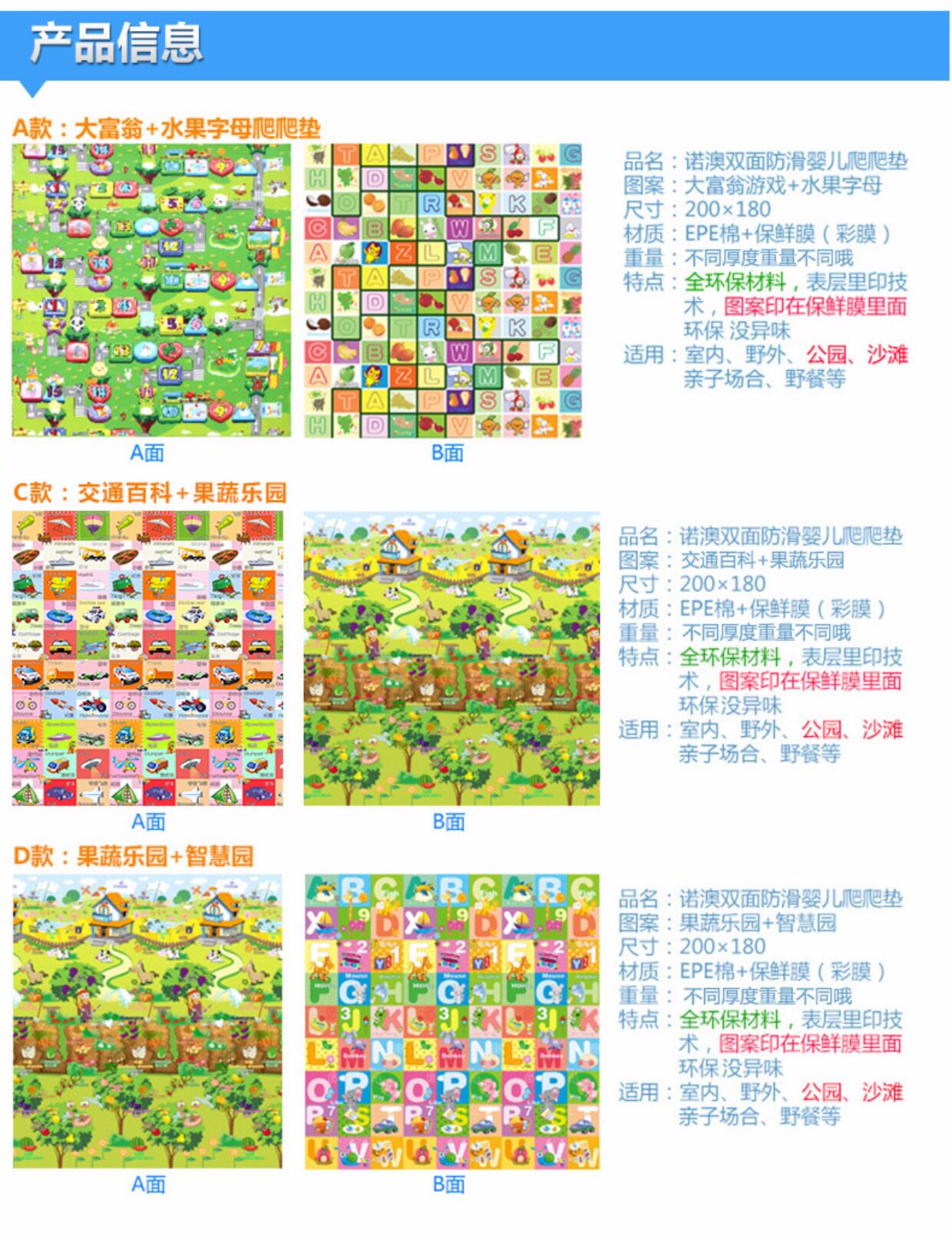 Экологичный детский игровой коврик для ползания из пены, ковер, увеличенная толщина