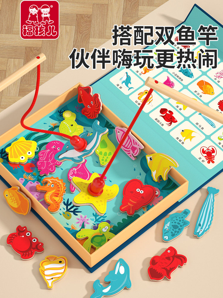 Деревянные детские магнитные интеллектуальные рыбки для рыбалки подходит для мужчин и женщин, котенок, 2 лет, обучение, 3 лет