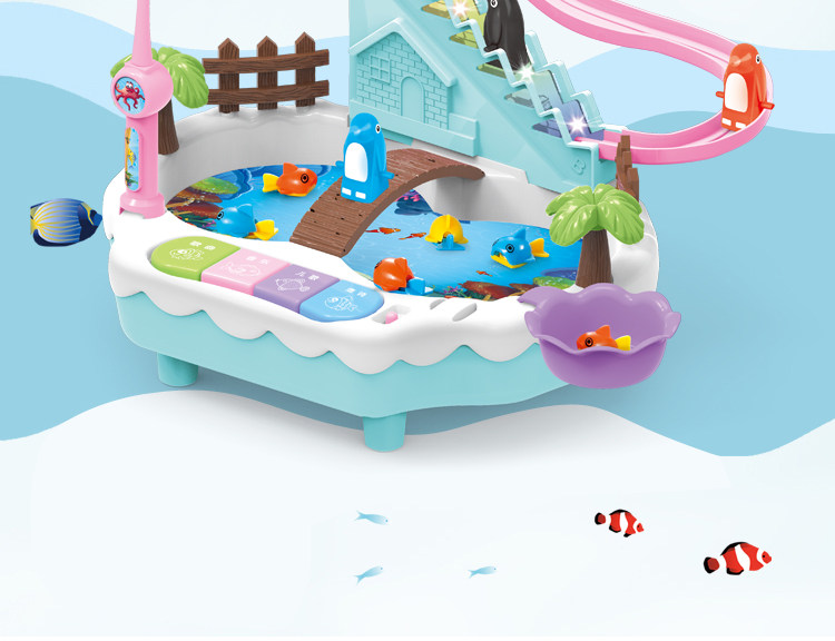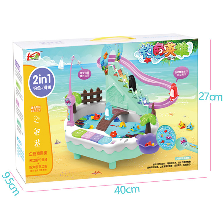 Герои с лестницей с рельсами, музыкальные крутящиеся электрические рыбки для рыбалки, магнитный комплект, пингвин