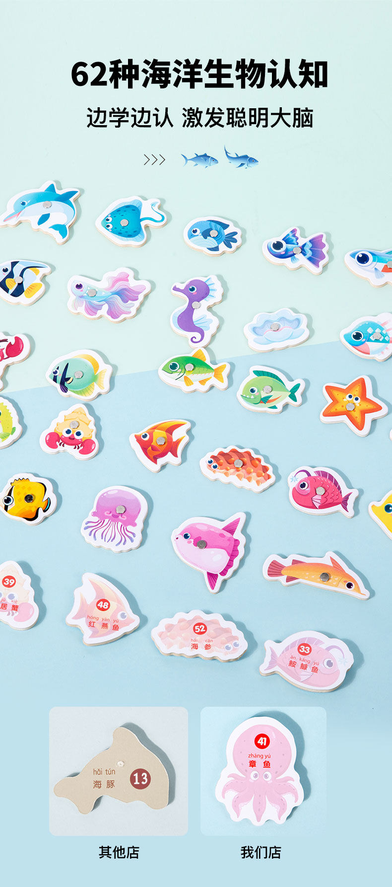 Деревянная магнитная игрушка для рыбалки для мальчиков и девочек, раннее развитие, подарок на день рождения