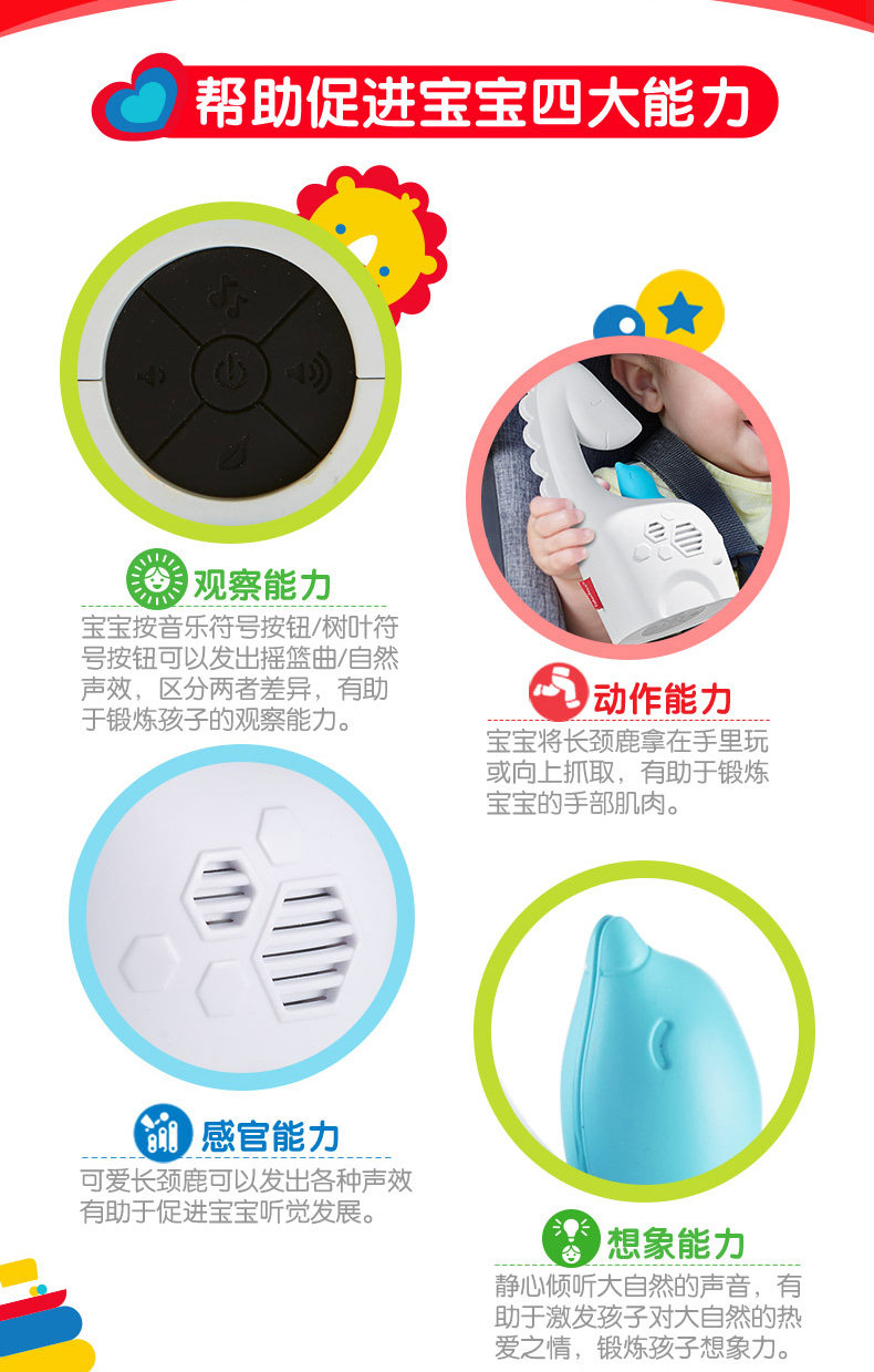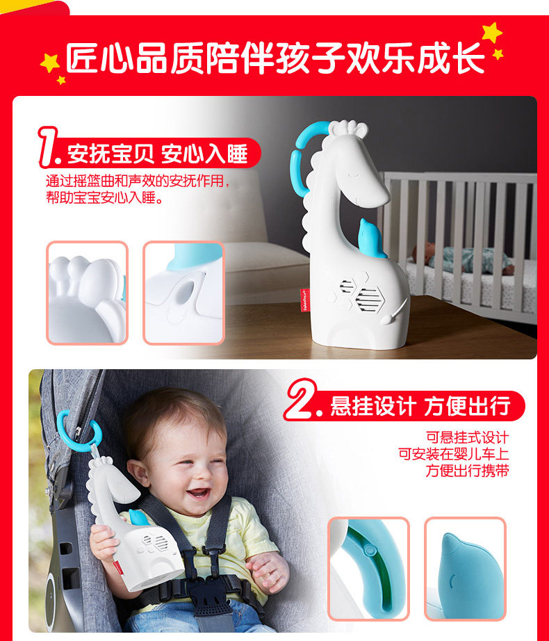Фишер Прайс Фей Сюэ Портативная музыкальная паста Giraffe FGG90 может повесить маленькие игрушки
