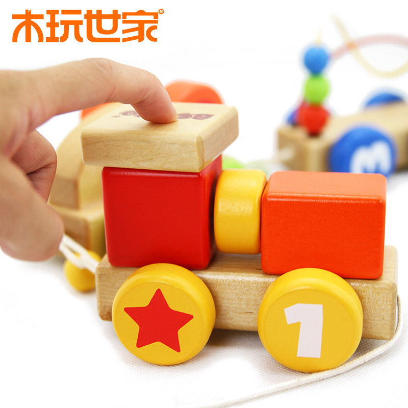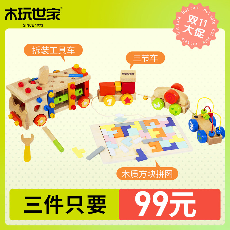 Деревянная трехсекционная машина Wanshijia, перетаскивание, звучащее колесо, машина для разборки и сборки гаек, детская развивающая деревянная игрушка
